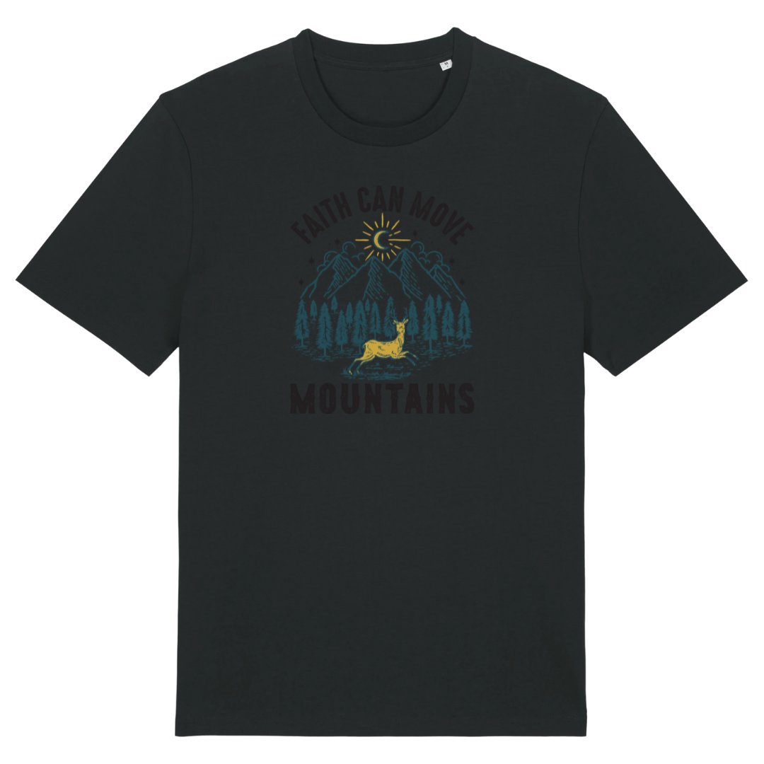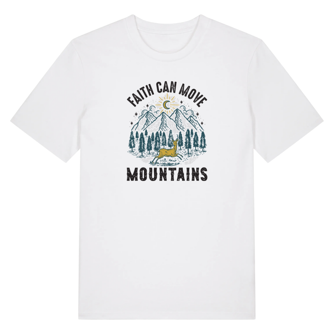 Erlebe Mode, die Deine Überzeugungen widerspiegelt, mit dem Mountain-Movers Premium Christian T-Shirt. Dieses Shirt aus 100% Biobaumwolle vereint Komfort mit Nachhaltigkeit, ist fair produziert und vegan.