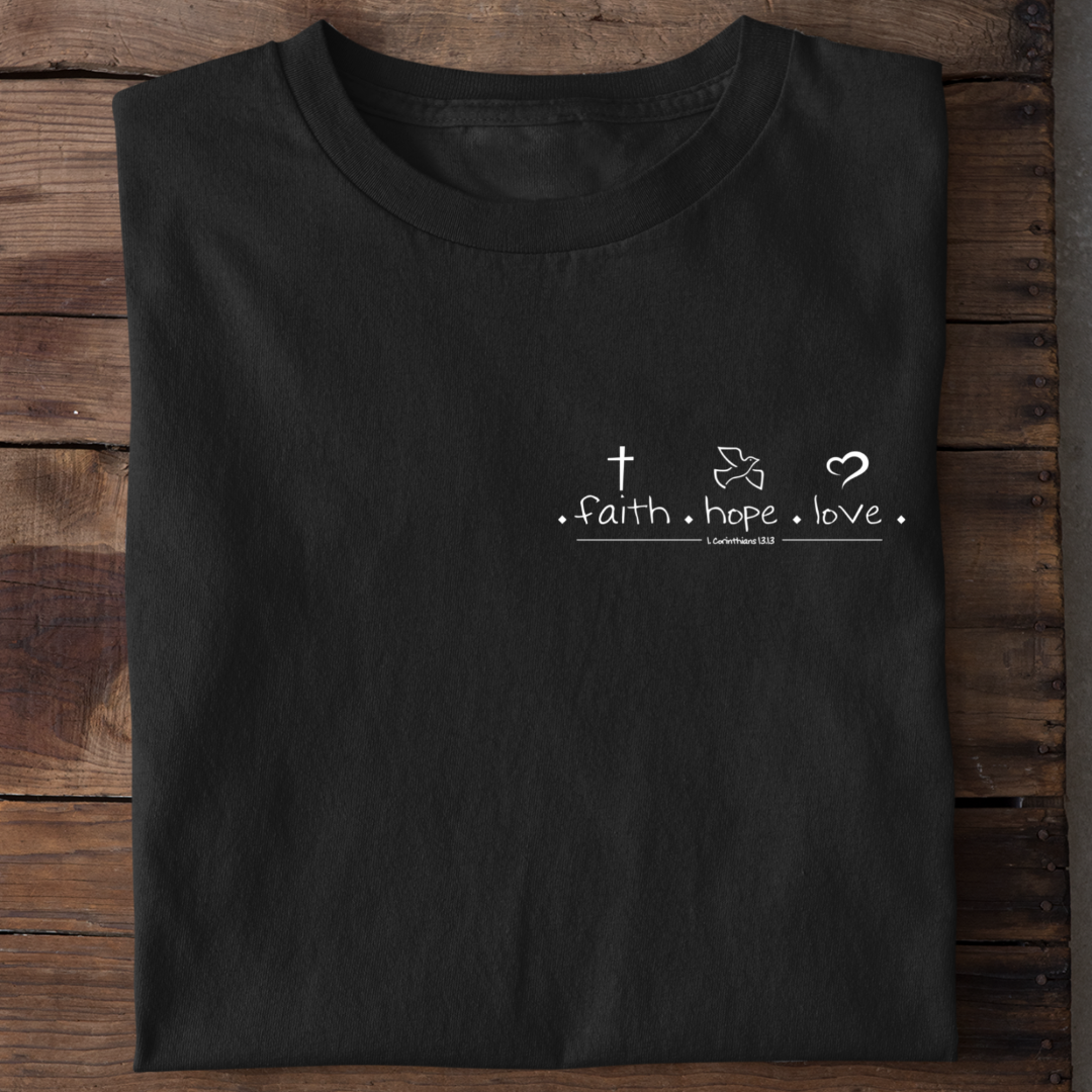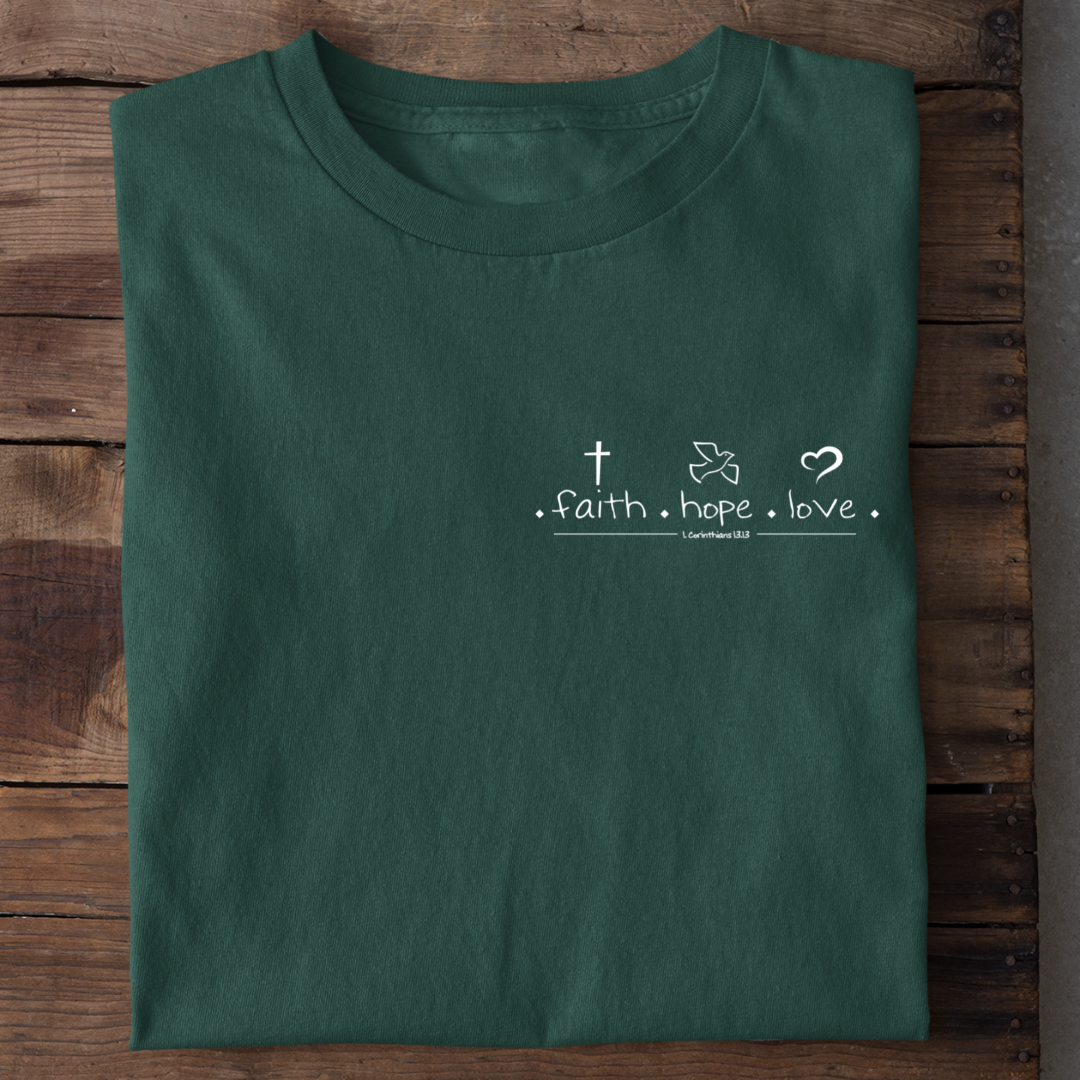 Im Design ist der Bibelvers 1. Korinther 13, 13 eingearbeitet.