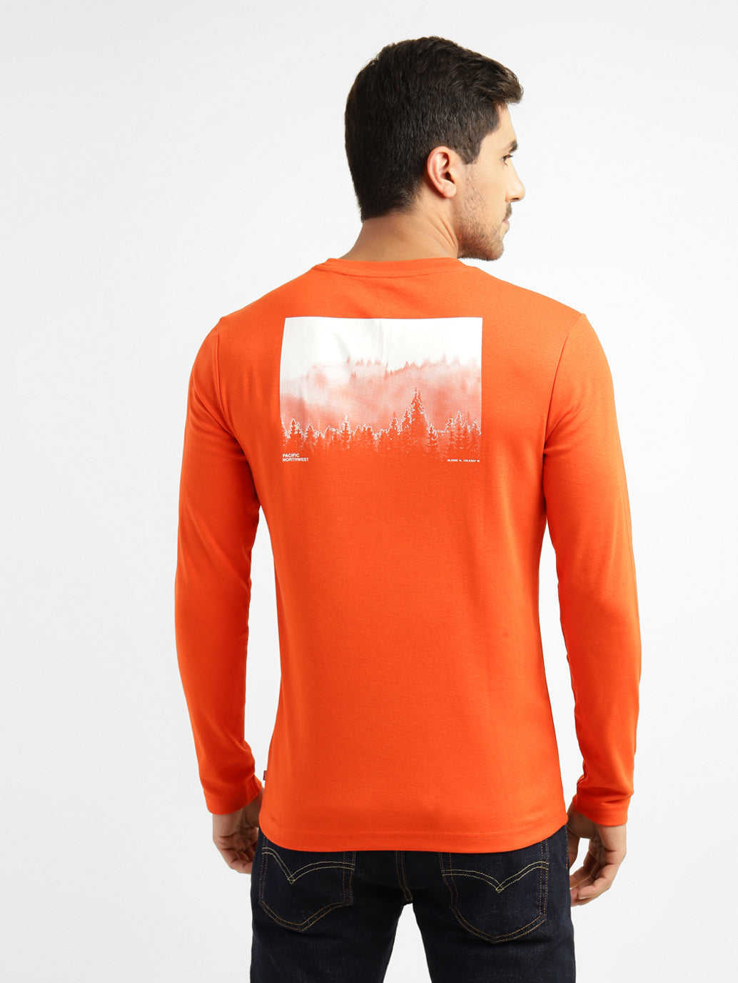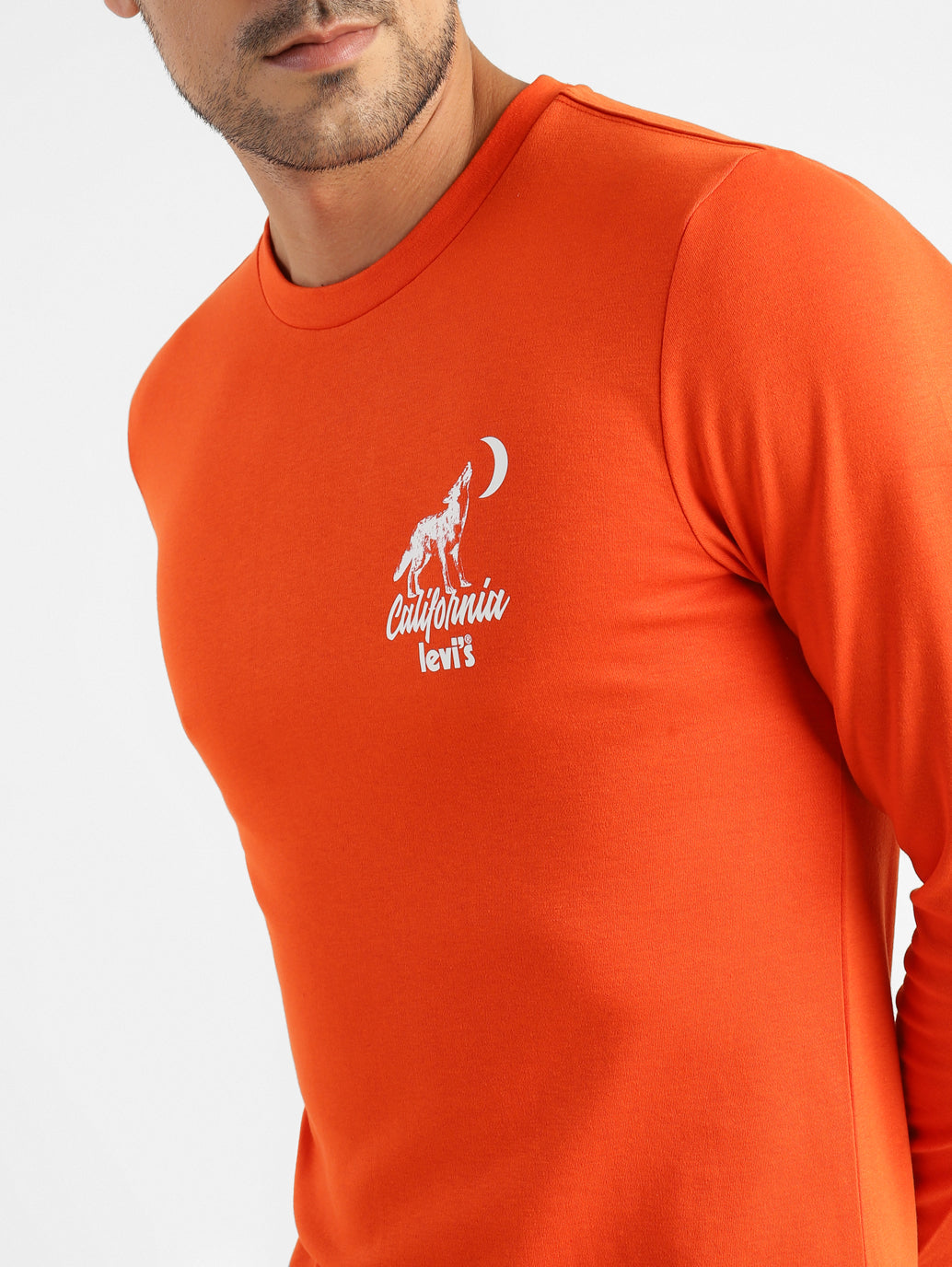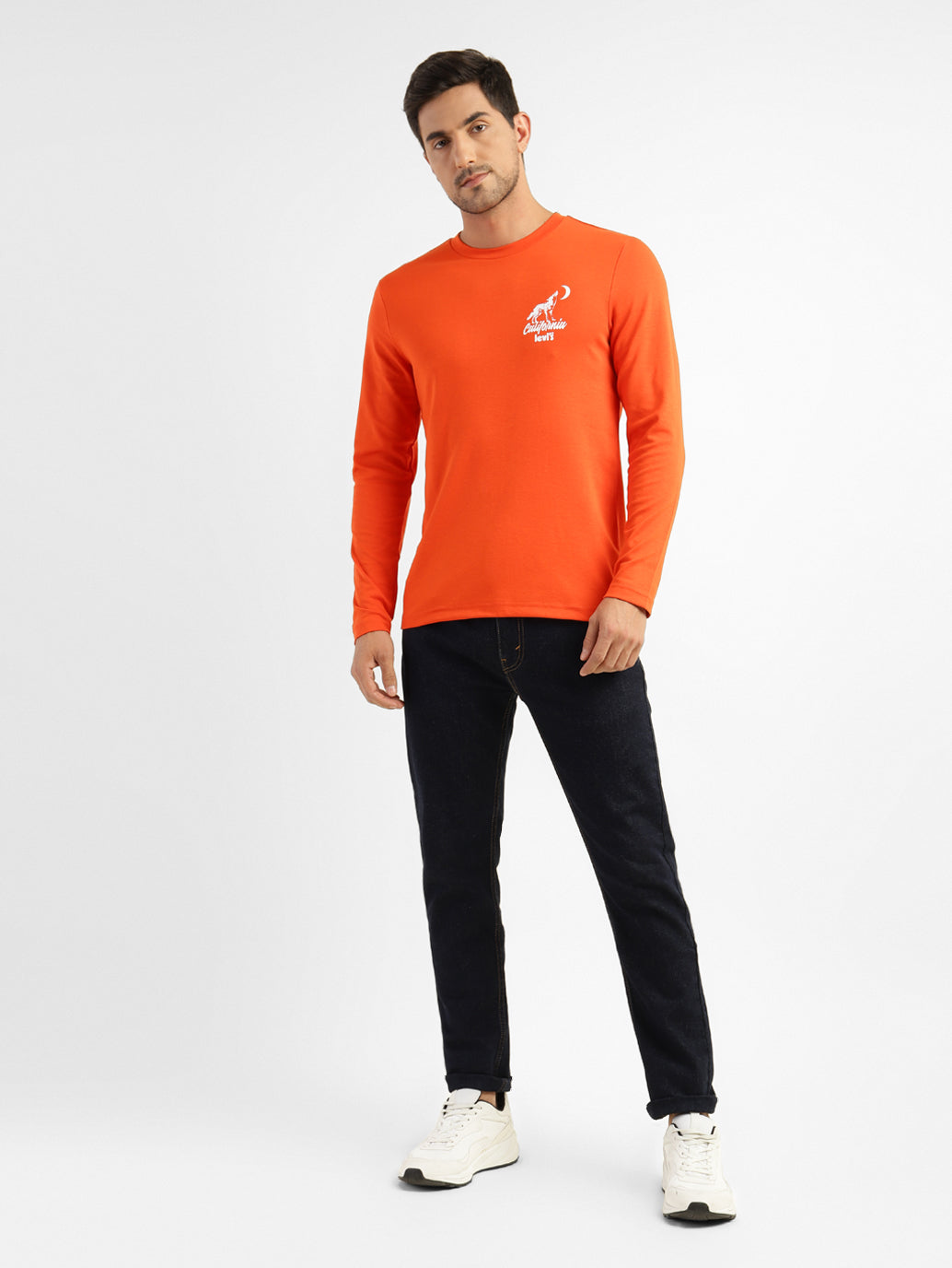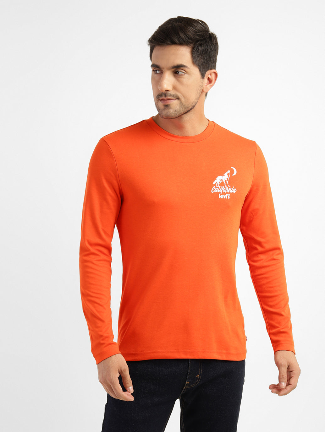 Flaunt a low-key vibe by donning the trendy Levi's Men's Crew Neck T-Shirt. This orange T-shirt features a graphic pattern for a distinctive appeal. This T-shirt comes with a crew neck, full sleeves, and is crafted from soft cotton blend material.