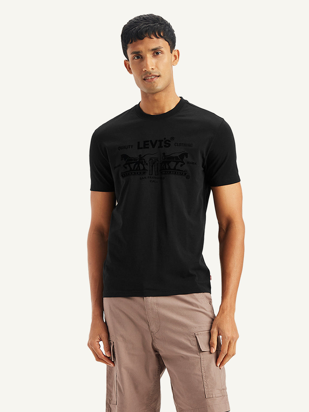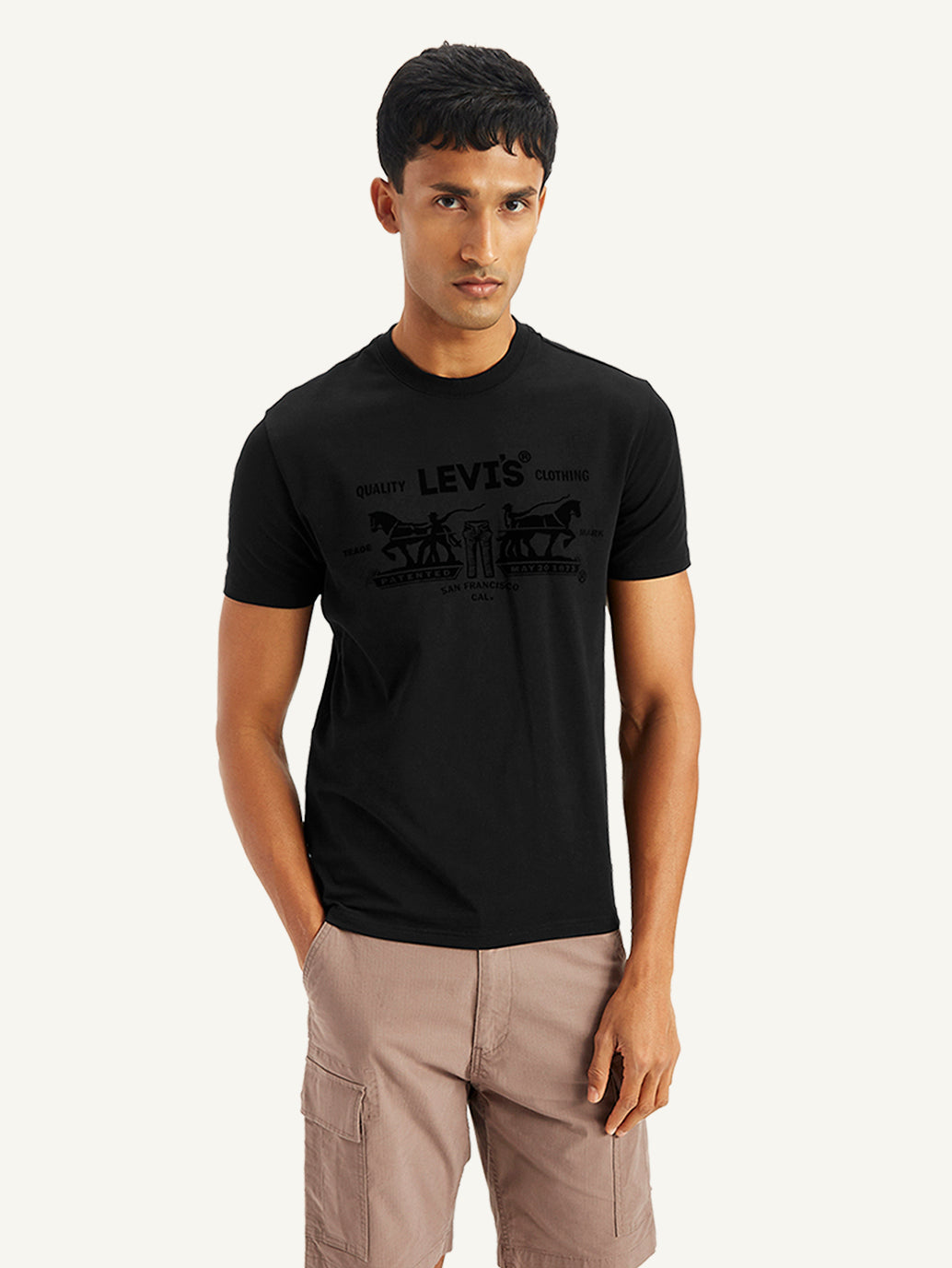 Step up your game and grab this latest t-shirt by Levi's for your wardrobe rotation. Ideal to wear with your jeans, shorts, or even your chinos, this black cotton t-shirt is designed to be versatile. Standard crew neck and half sleeves in slim fit.