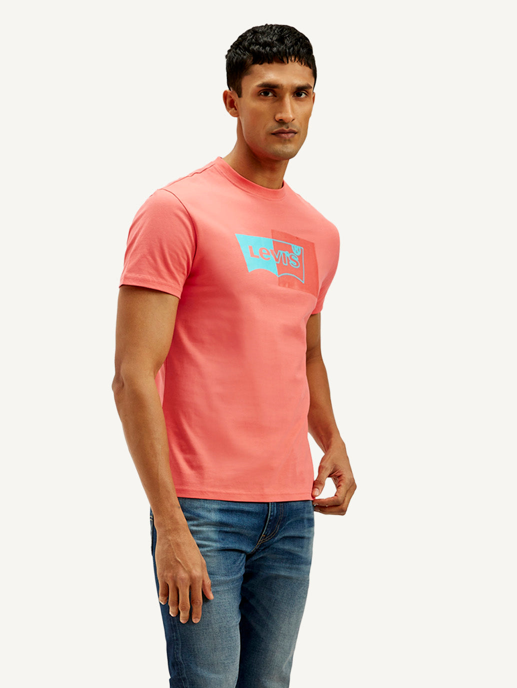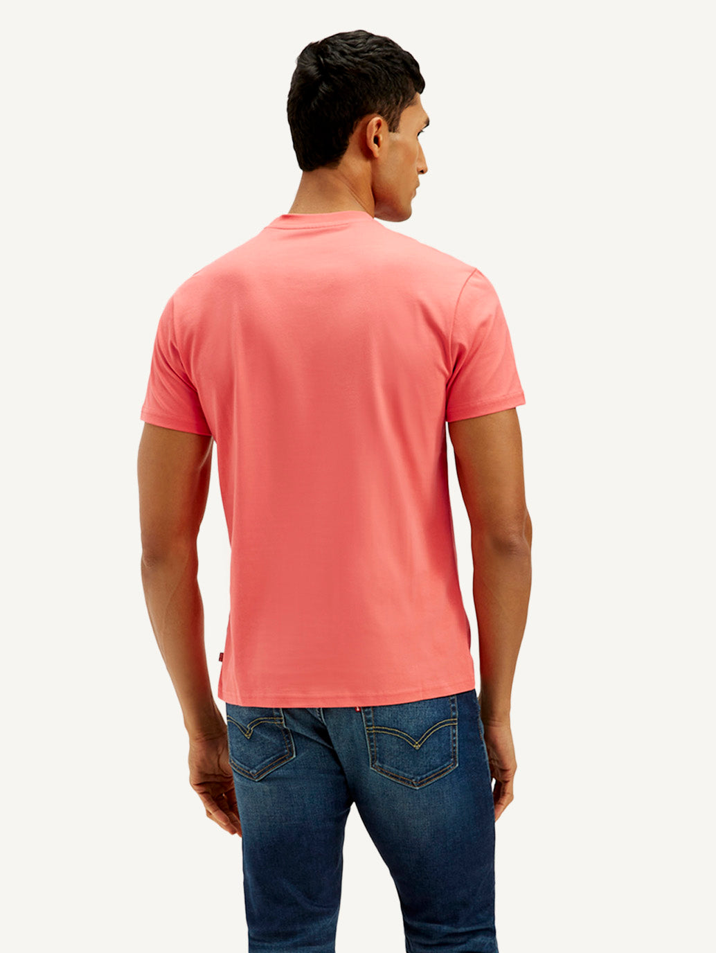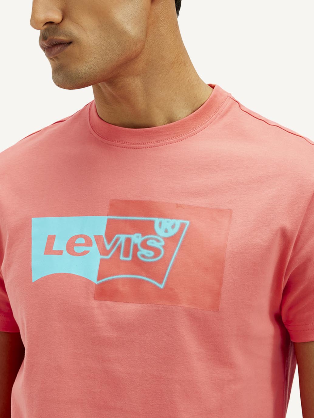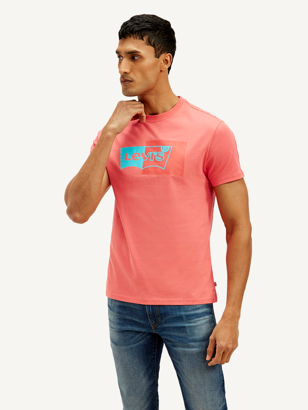 Blending style with comfort, check out this off-duty essential by Levi's. This t-shirt features a brand logo pattern and comes in the color coral. Classic crew neck and half sleeves.