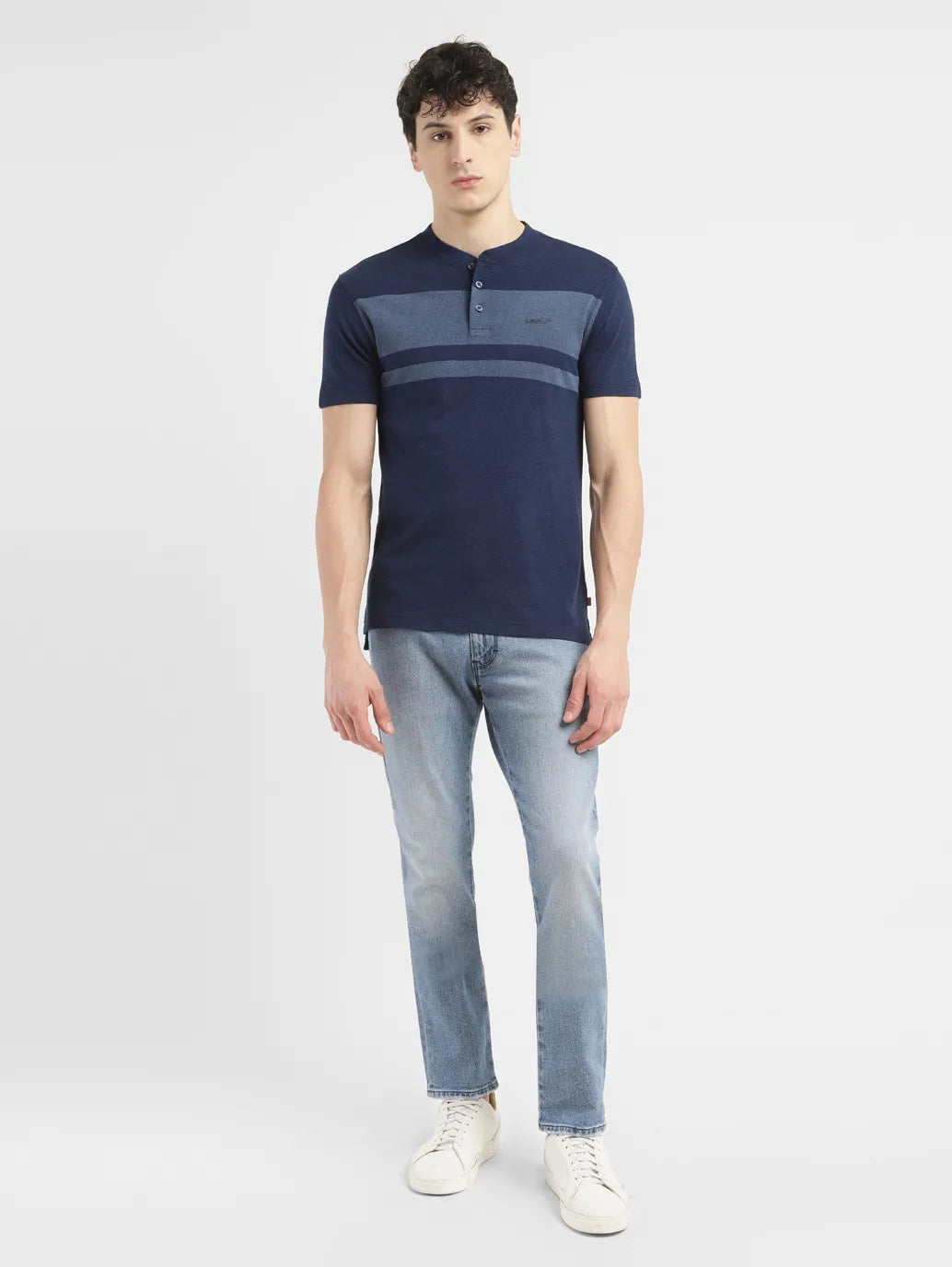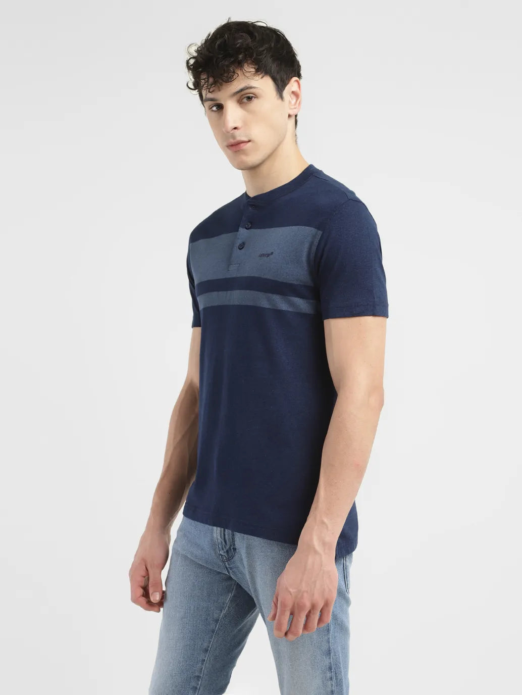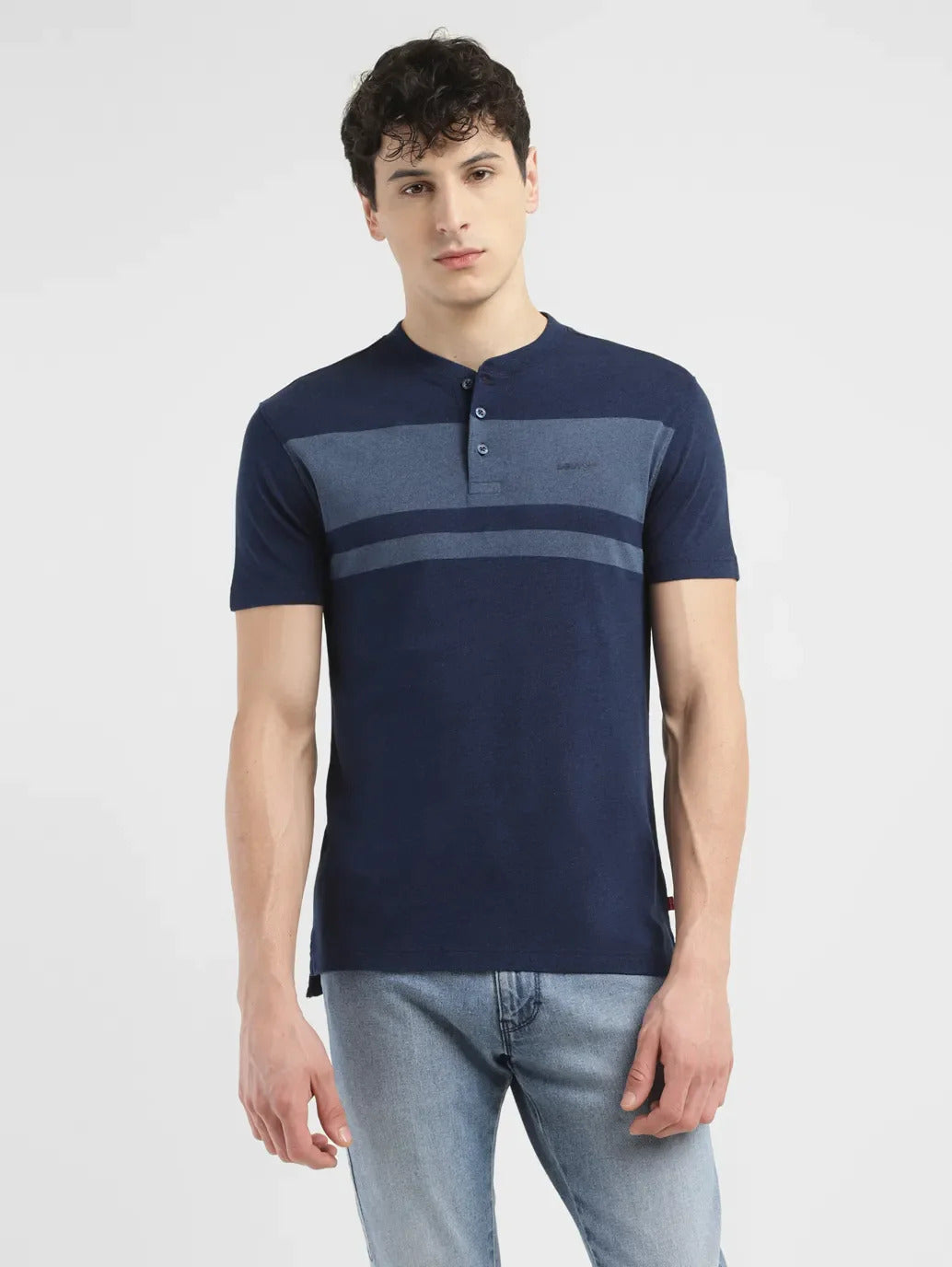 Keep it casual and cool with this trending T-shirt from Levi's. Made from good quality pure cotton, this t-shirt features a henley neck and short sleeves. Easy to wear and style, we recommend complementing this t-shirt with a classic denim jacket and a pair of white sneakers.1. Slim fit ensures comfort2. Designed with a colorblock pattern3. Casual staple in the color blue