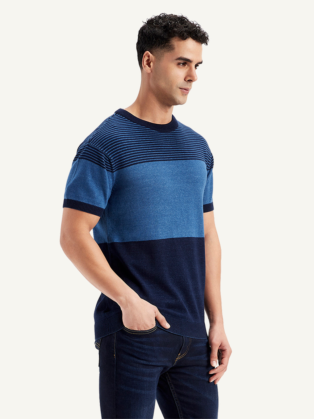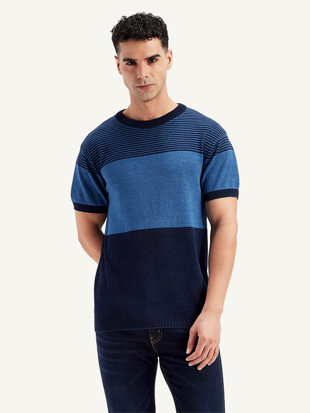 Made from good quality cotton, this easygoing Levis navy t-shirt is perfect to add to your casual collection. Features a crew neck and a colorblock pattern.