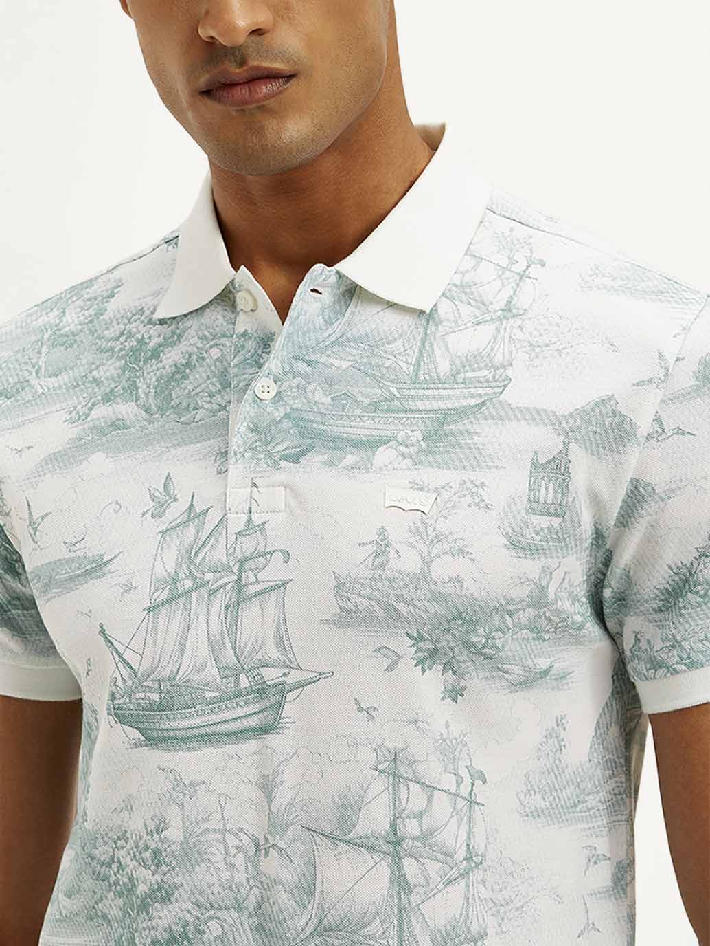 Step up your game and grab this latest t-shirt by Levi's for your wardrobe rotation. Ideal to wear with your jeans, shorts, or even your chinos, this white cotton t-shirt is designed to be versatile. Standard polo collar and half sleeves in slim-fit.