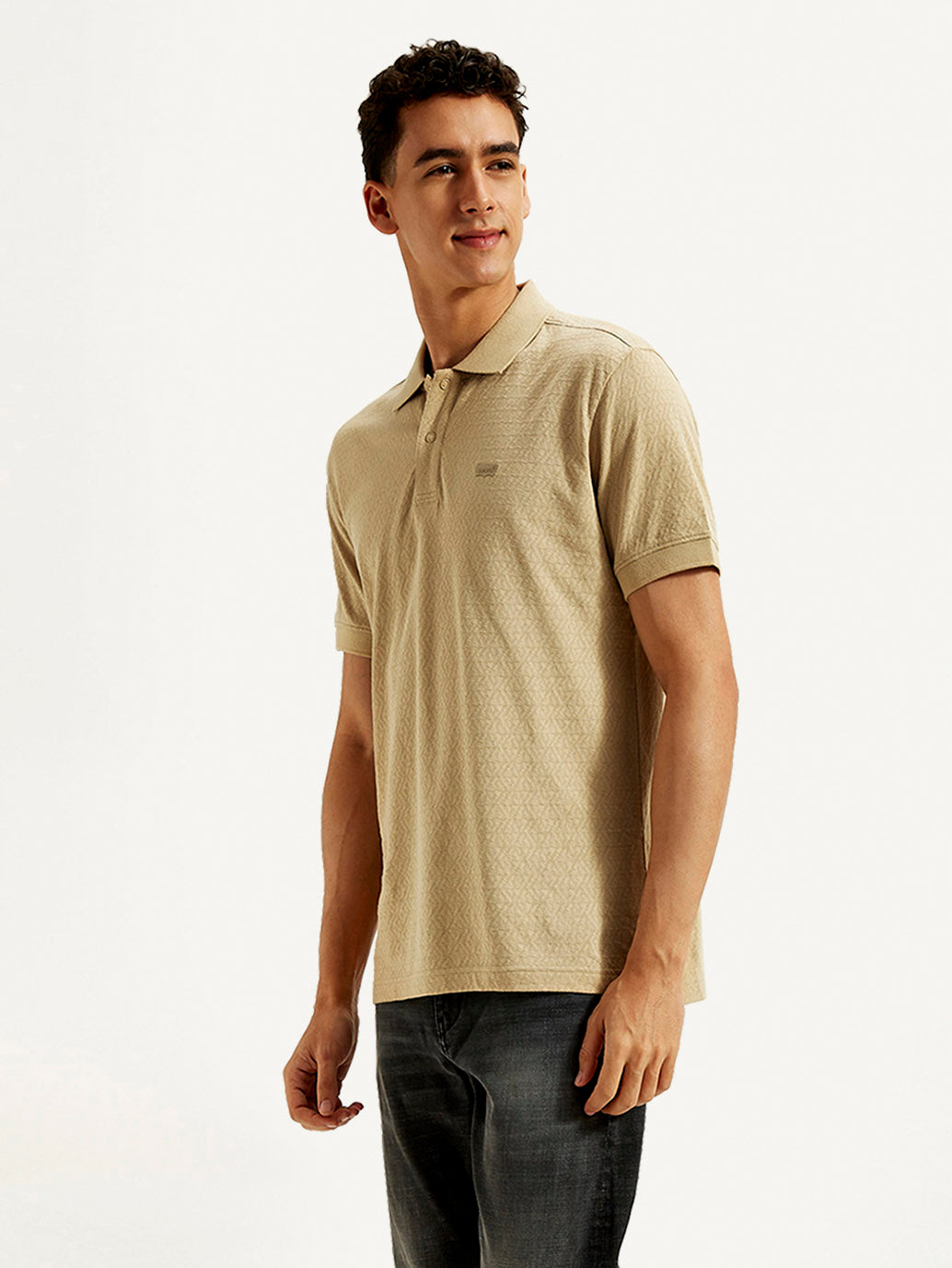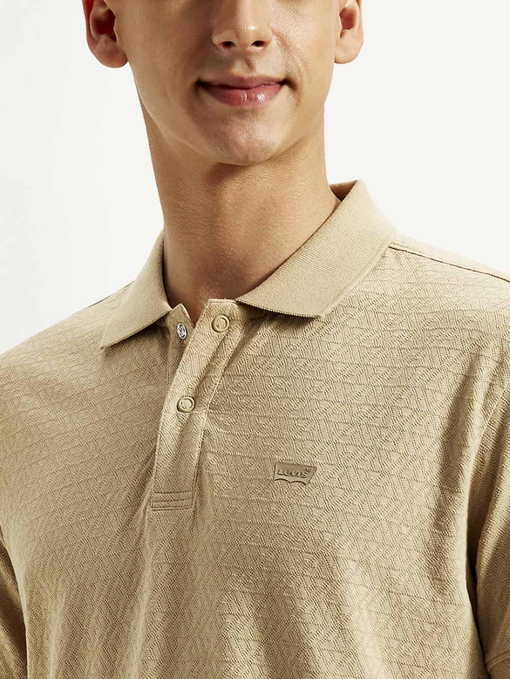 Made from good quality cotton, this easygoing Levis beige t-shirt is perfect to add to your casual collection. Features a polo collar and a geometric pattern.