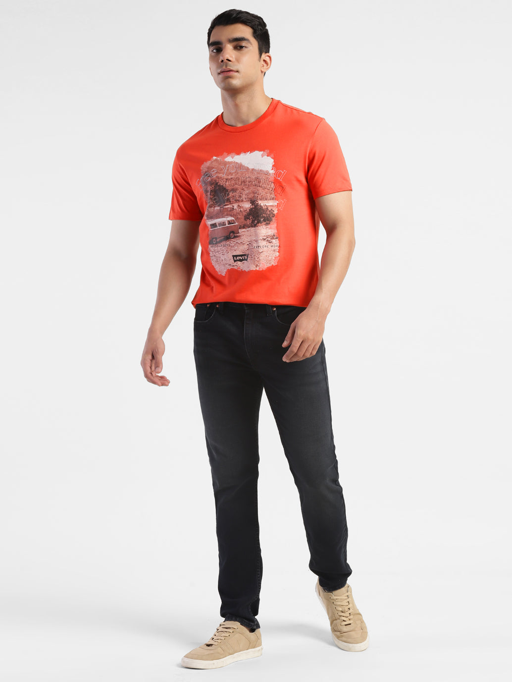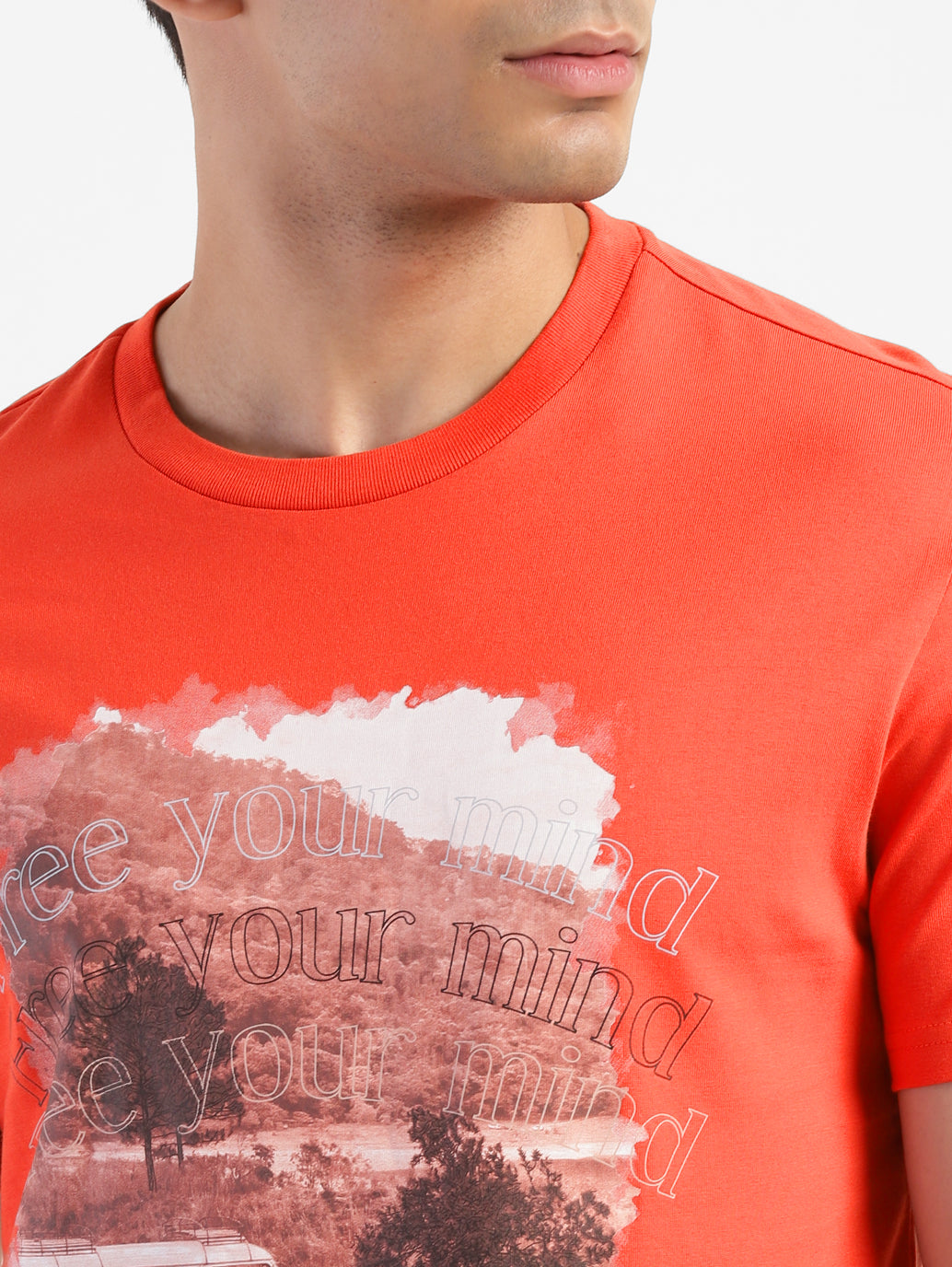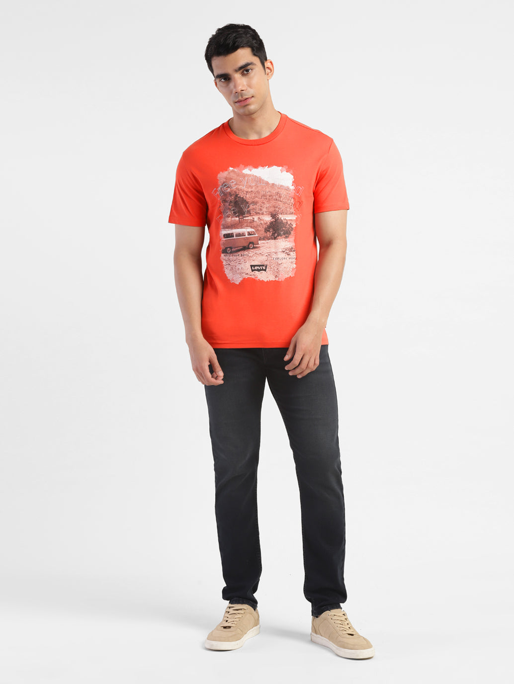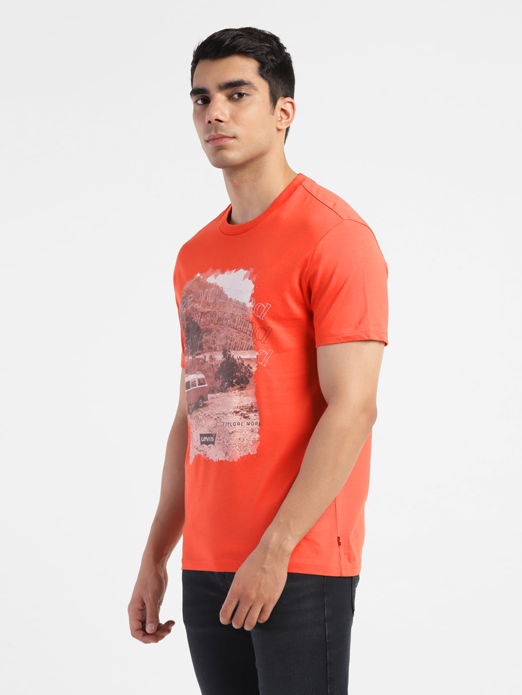 Upgrade casual days, effortlessly with this easy-to-wear fit. This Levi's t-shirt adds a contemporary twist to off-duty style with its graphic pattern and orange color. Pair it with flared jeans and boots.