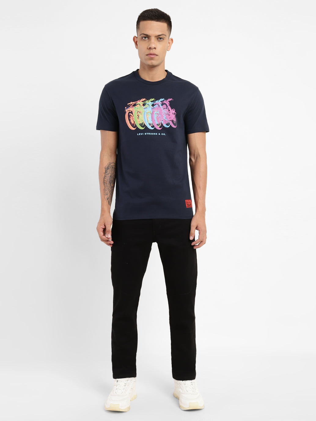Levi's presents to you this timeless piece for your casual collection. This t-shirt is a staple to own. You can even style it up a notch and pull off an elevated look by teaming the t-shirt with black trousers, a biker jacket, and a pair of sleek loafers.