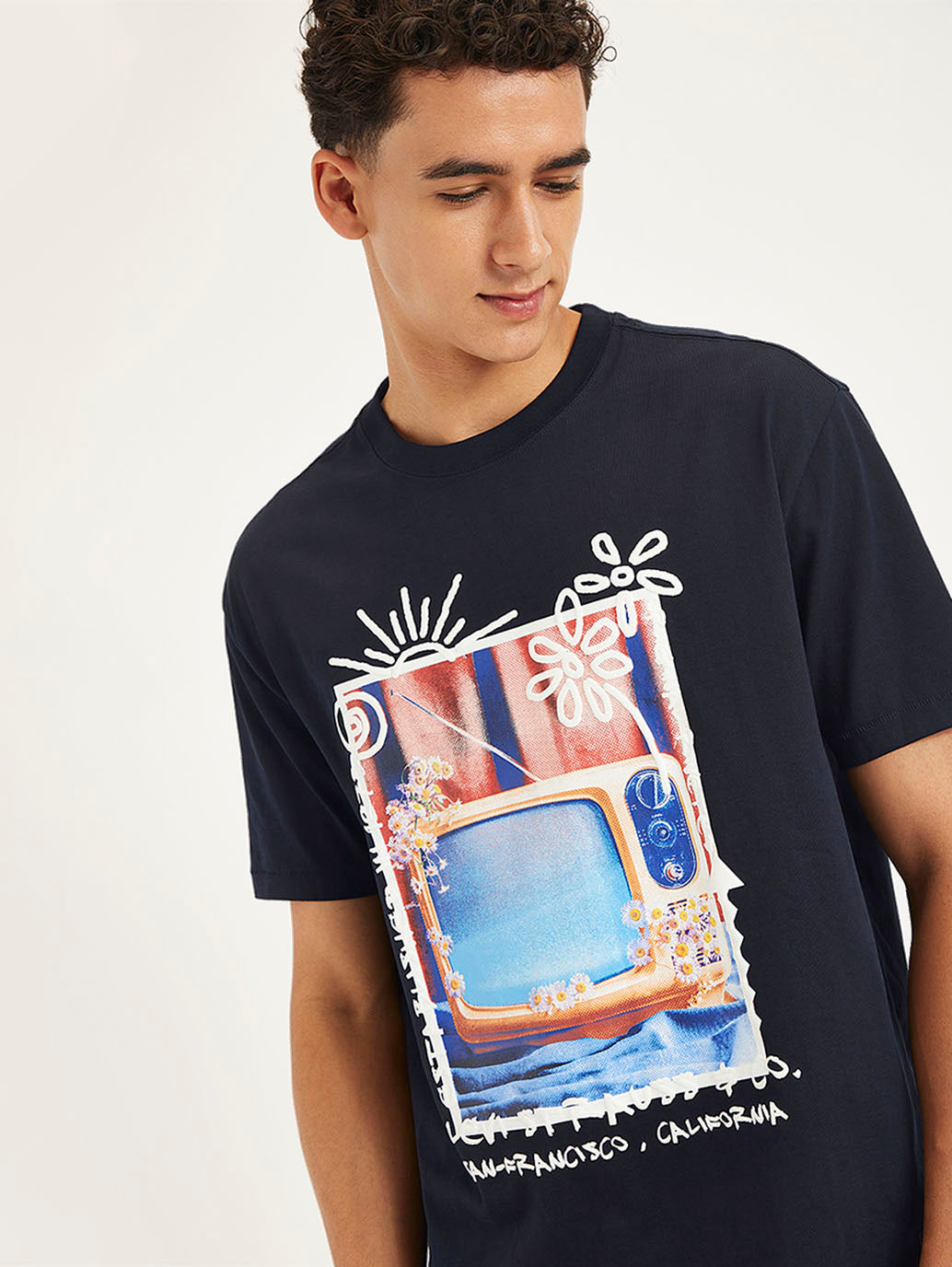 Step up your game and grab this latest t-shirt by Levi's for your wardrobe rotation. Ideal to wear with your jeans, shorts, or even your chinos, this navy cotton t-shirt is designed to be versatile. Standard crew neck and half sleeves in regular fit.