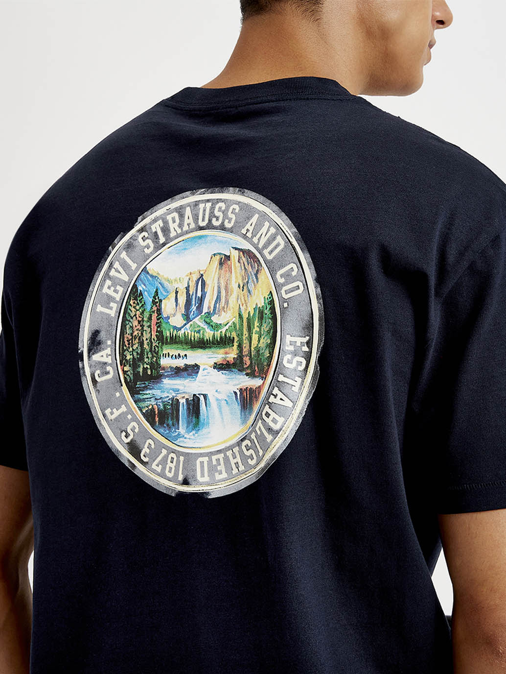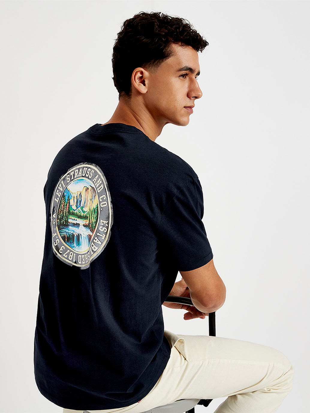This t-shirt designed by Levi's is an easy and comfortable piece to add to your wardrobe. Lightweight and durable, it features a graphic pattern and comes in the color navy. Cut from premium quality cotton in regular fit comes with simple details.