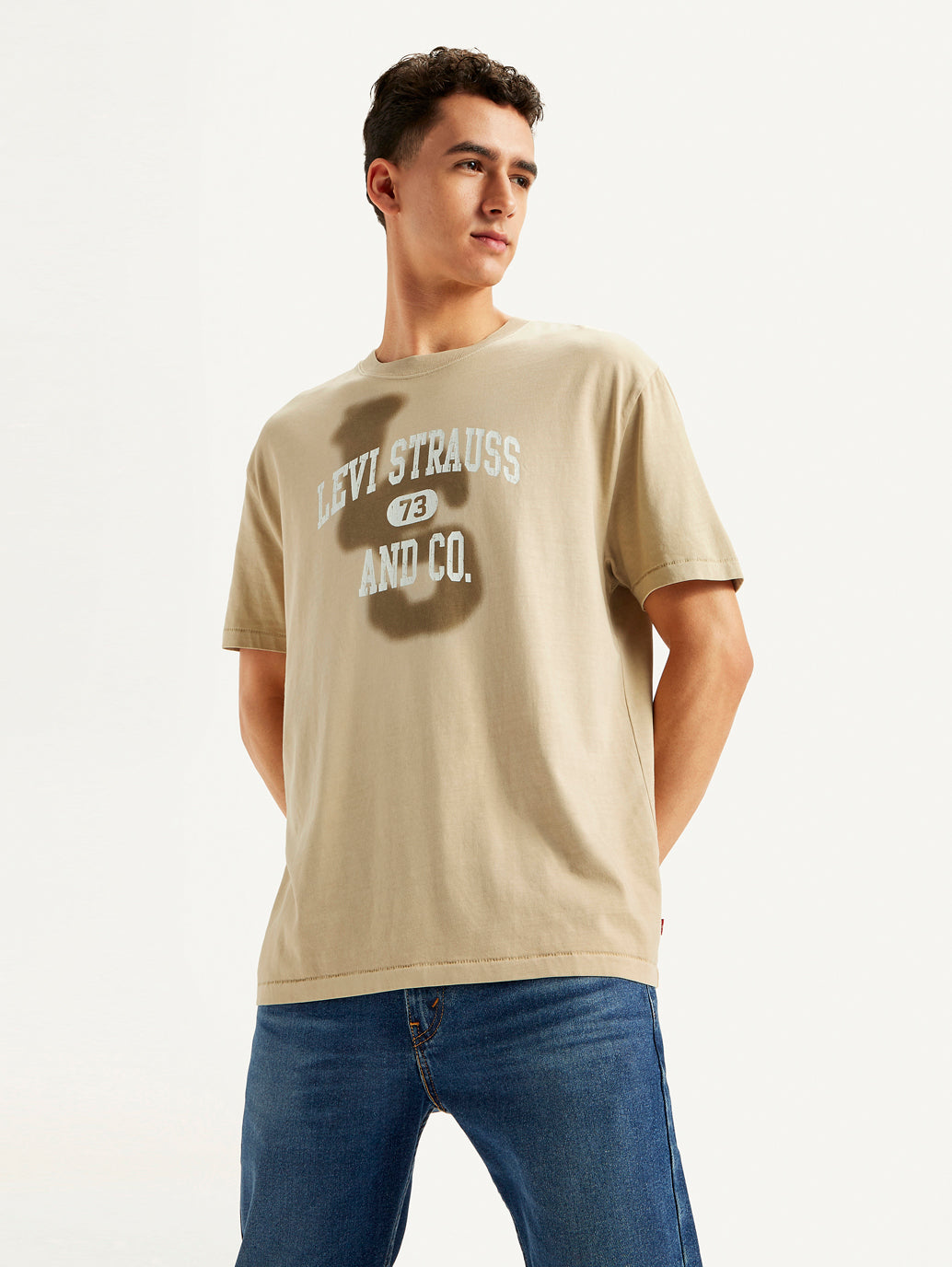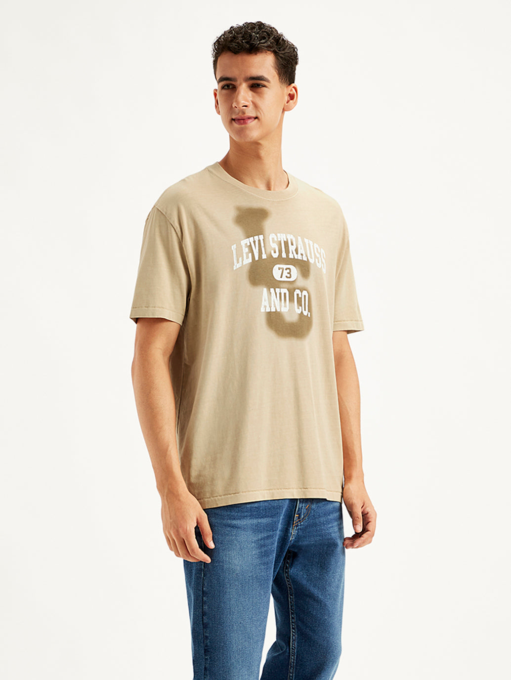 Made from good quality cotton, this easygoing Levis beige t-shirt is perfect to add to your casual collection. Features a crew neck and a graphic pattern.