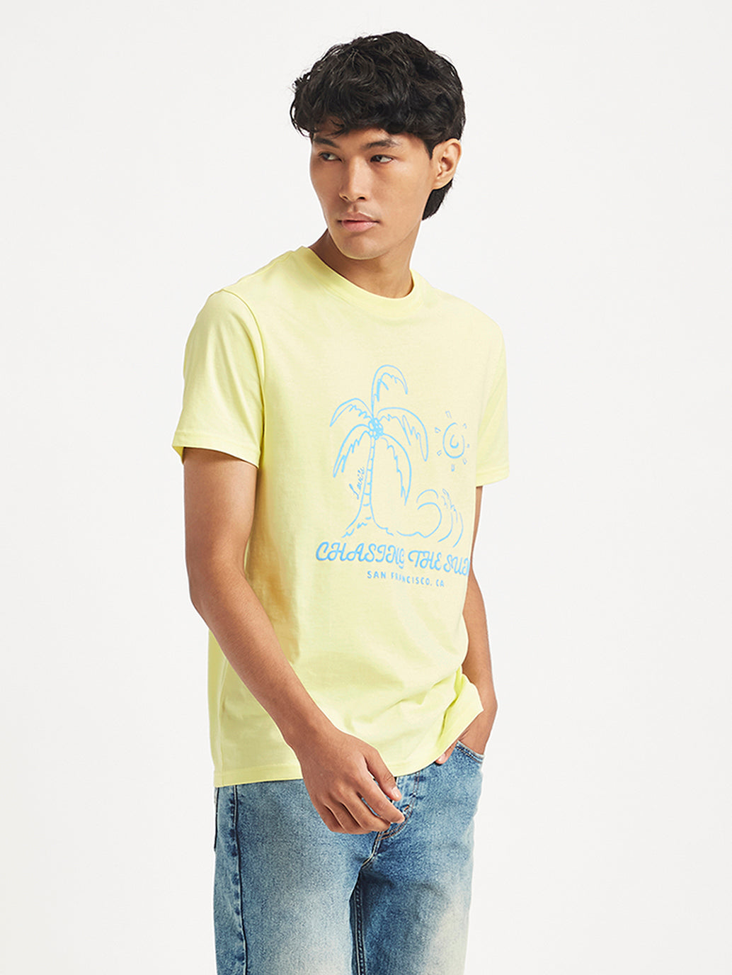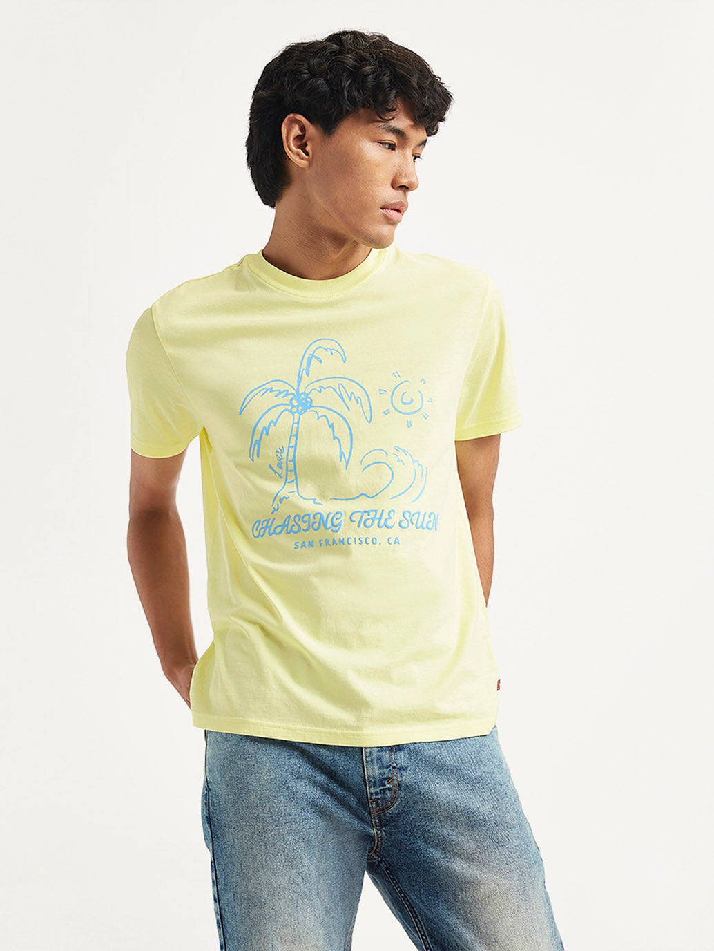 Step up your game and grab this latest t-shirt by Levi's for your wardrobe rotation. Ideal to wear with your jeans, shorts, or even your chinos, this yellow cotton t-shirt is designed to be versatile. Standard crew neck and half sleeves in slim fit.
