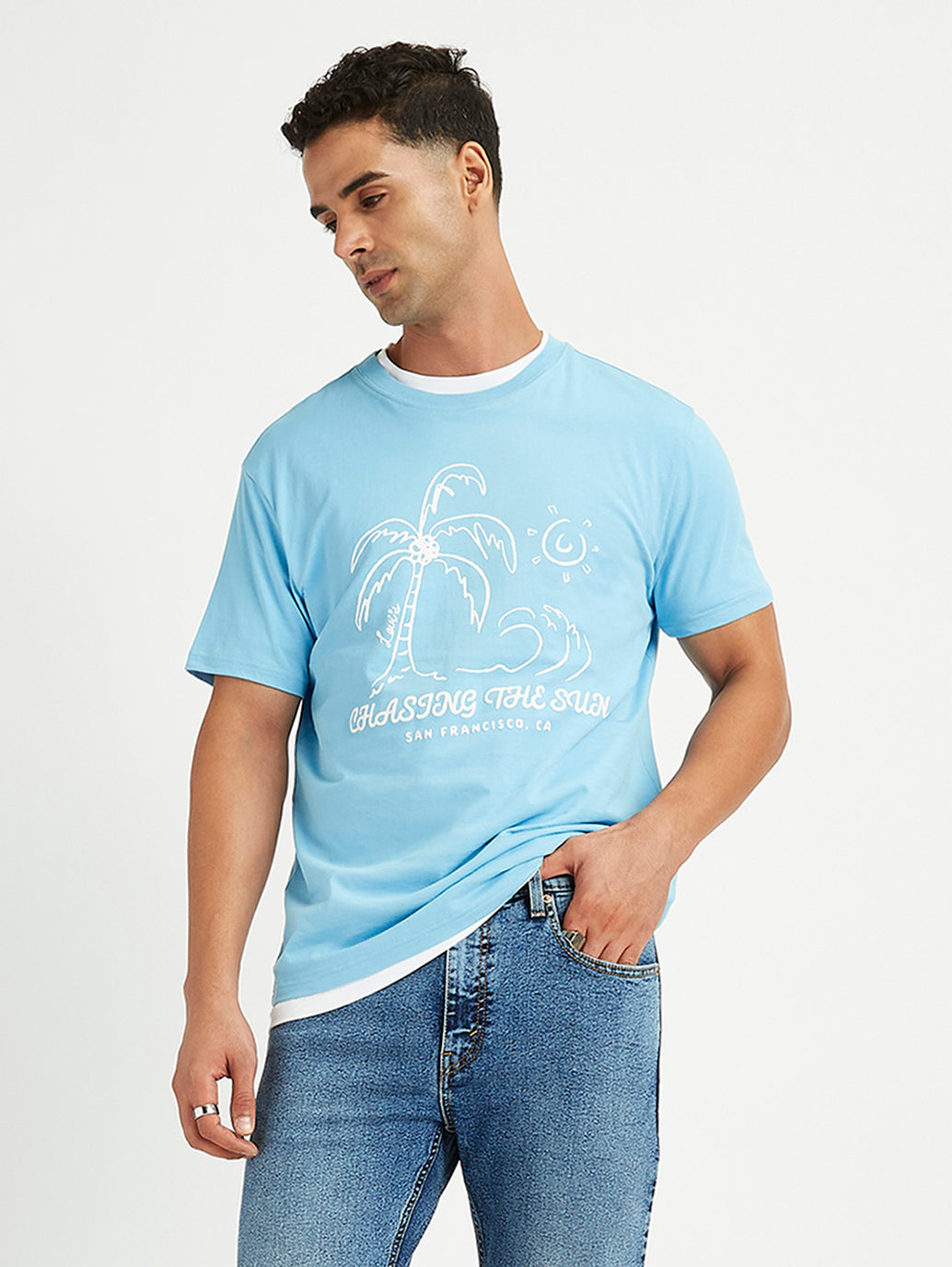 Step up your game and grab this latest t-shirt by Levi's for your wardrobe rotation. Ideal to wear with your jeans, shorts, or even your chinos, this blue cotton t-shirt is designed to be versatile. Standard crew neck and half sleeves in slim fit.