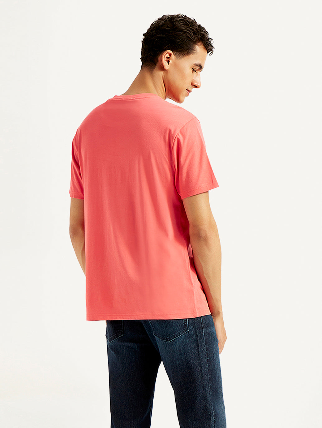 Blending style with comfort, check out this off-duty essential by Levi's. This t-shirt features a graphic pattern and comes in the colour peach. Classic crew neck and half sleeves.
