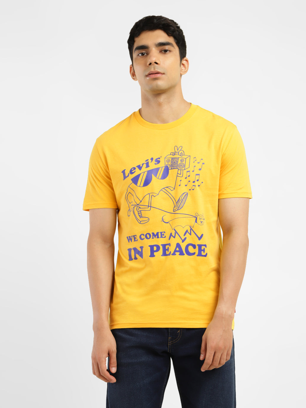Made of cotton, this brilliant yellow Levi's t-shirt is the perfect statement piece to take you from season to season in style. With a graphic pattern and a super soft feel, this t-shirt is sure to become your new go-to. Pair it with dark-washed jeans and sneakers.