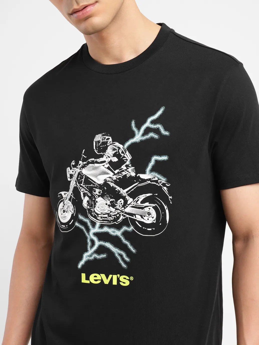 Switch up your everyday wardrobe with this trending t-shirt from Levi's. Ideal to wear for all seasons, this versatile t-shirt features a crew neck and short sleeves. Style it with a pair of straight-fit denims and white shoes to complete your outfit.1. Made from premium quality pure cotton2. Slim fit in the shade black3. Comfortable essential with a graphic pattern