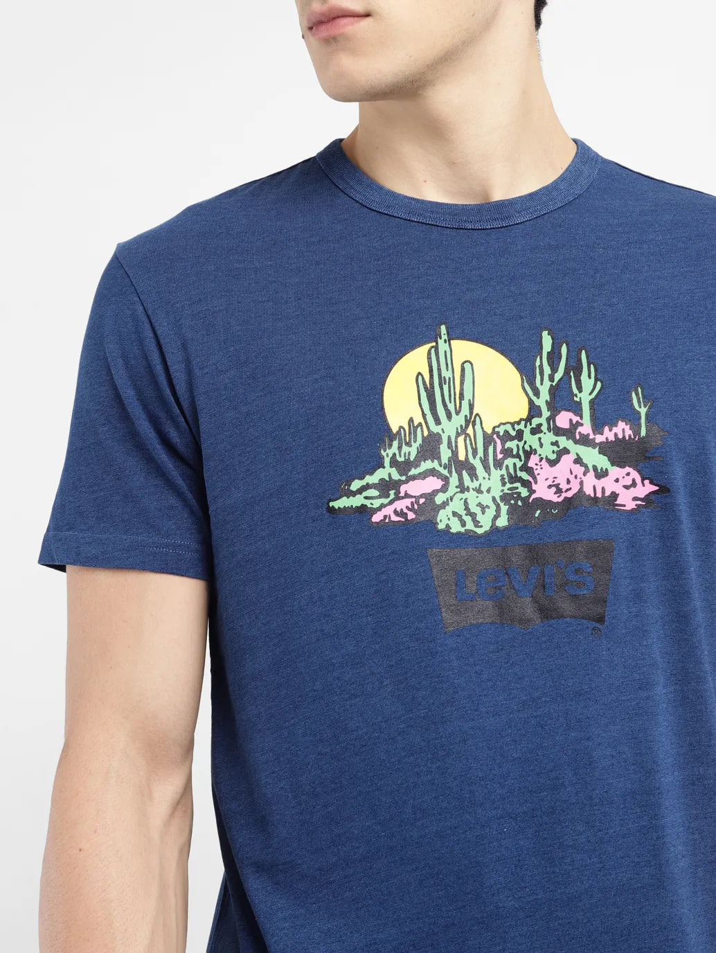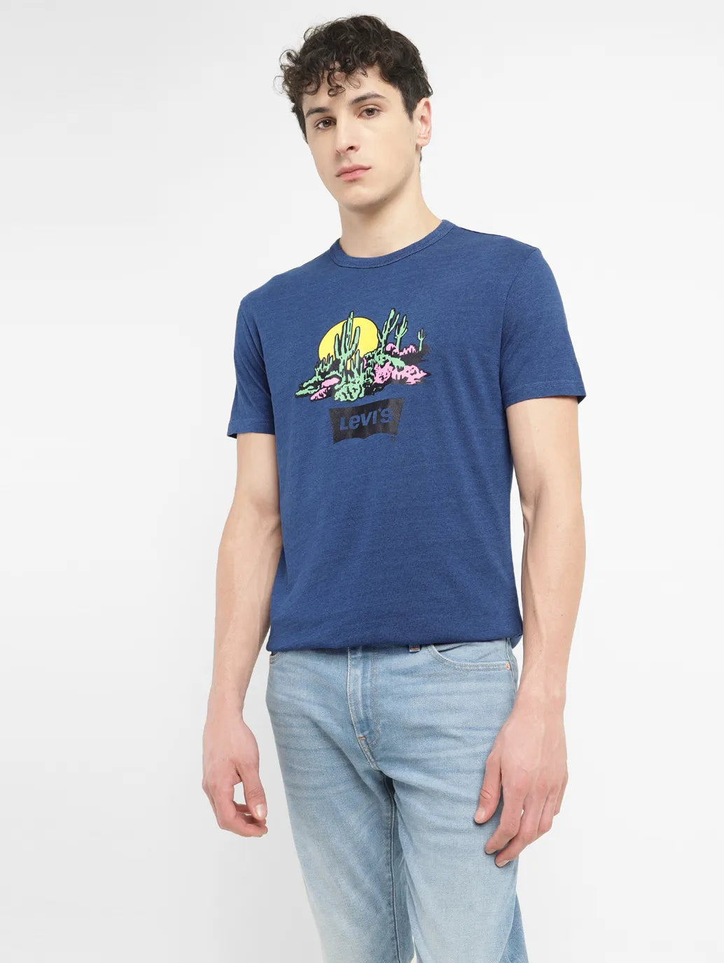Step up your game and grab this latest t-shirt by Levi's for your wardrobe rotation. Ideal to wear with your jeans, shorts, or even your chinos, this blue pure cotton t-shirt is designed to be versatile. We recommend keeping it simple and layering it with a solid-colored shirt for a casual night out with your friends.1. Slim fit essential2. Features a graphic pattern in pure cotton3. Standard crew neck and short sleeves