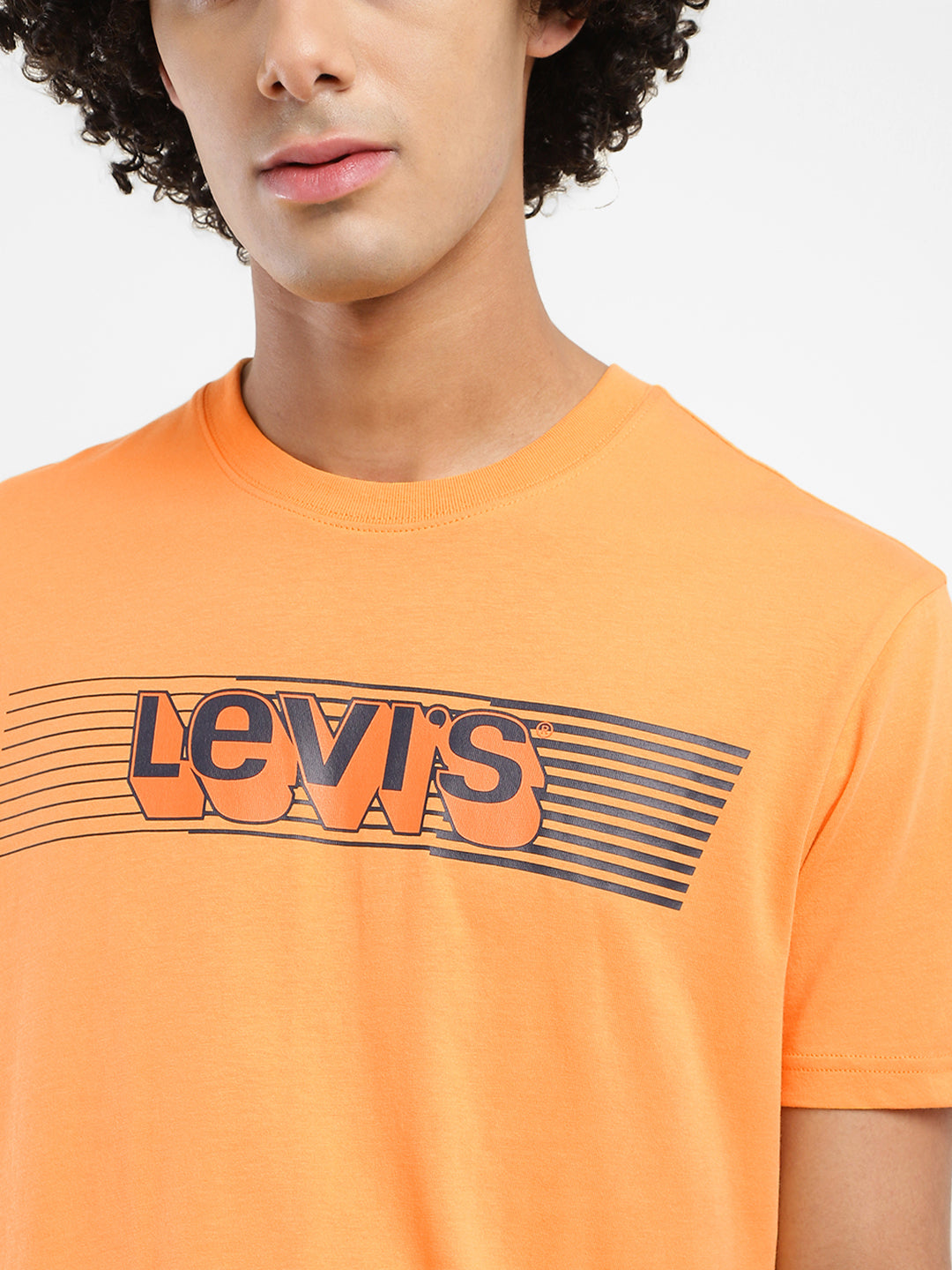 Blending style with comfort, check out this off duty essential by Levi's. This t-shirt features a solid pattern and comes in the color orange. Classic crew neck and short-sleeved sleeves.