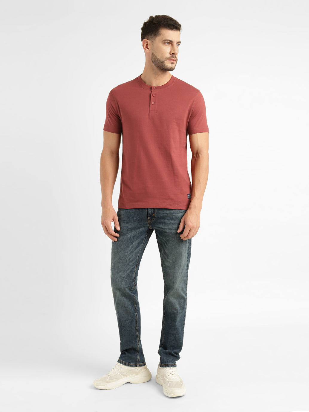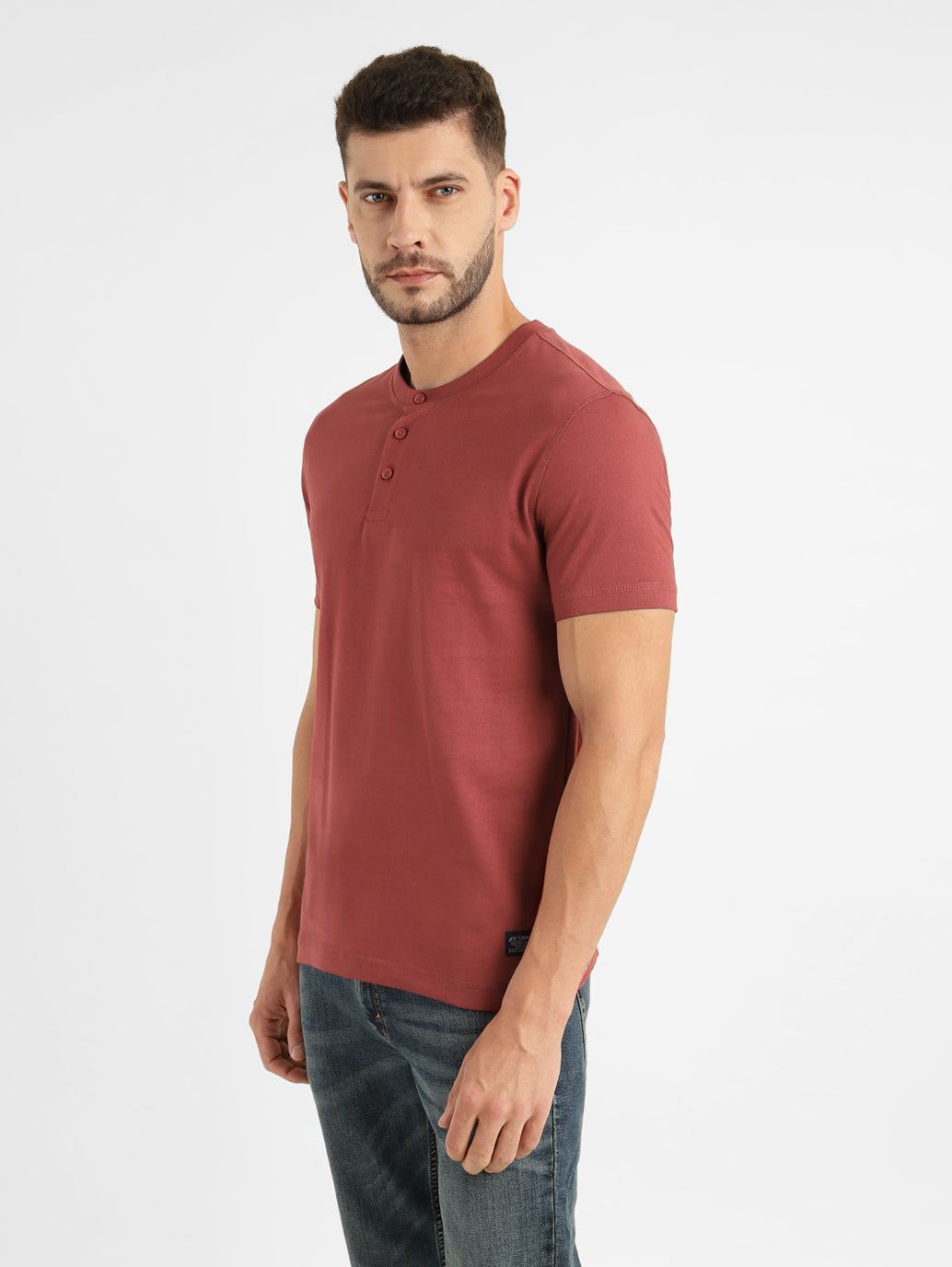 Refresh your casual wear collection by opting for the trendy and versatile Levi's®Men's Henley Neck T-Shirt. Featuring a solid pattern, this red T-shirt is sure to match your favourite pair of bottoms. Made from cotton material, this tee features a henley neck and short sleeves.