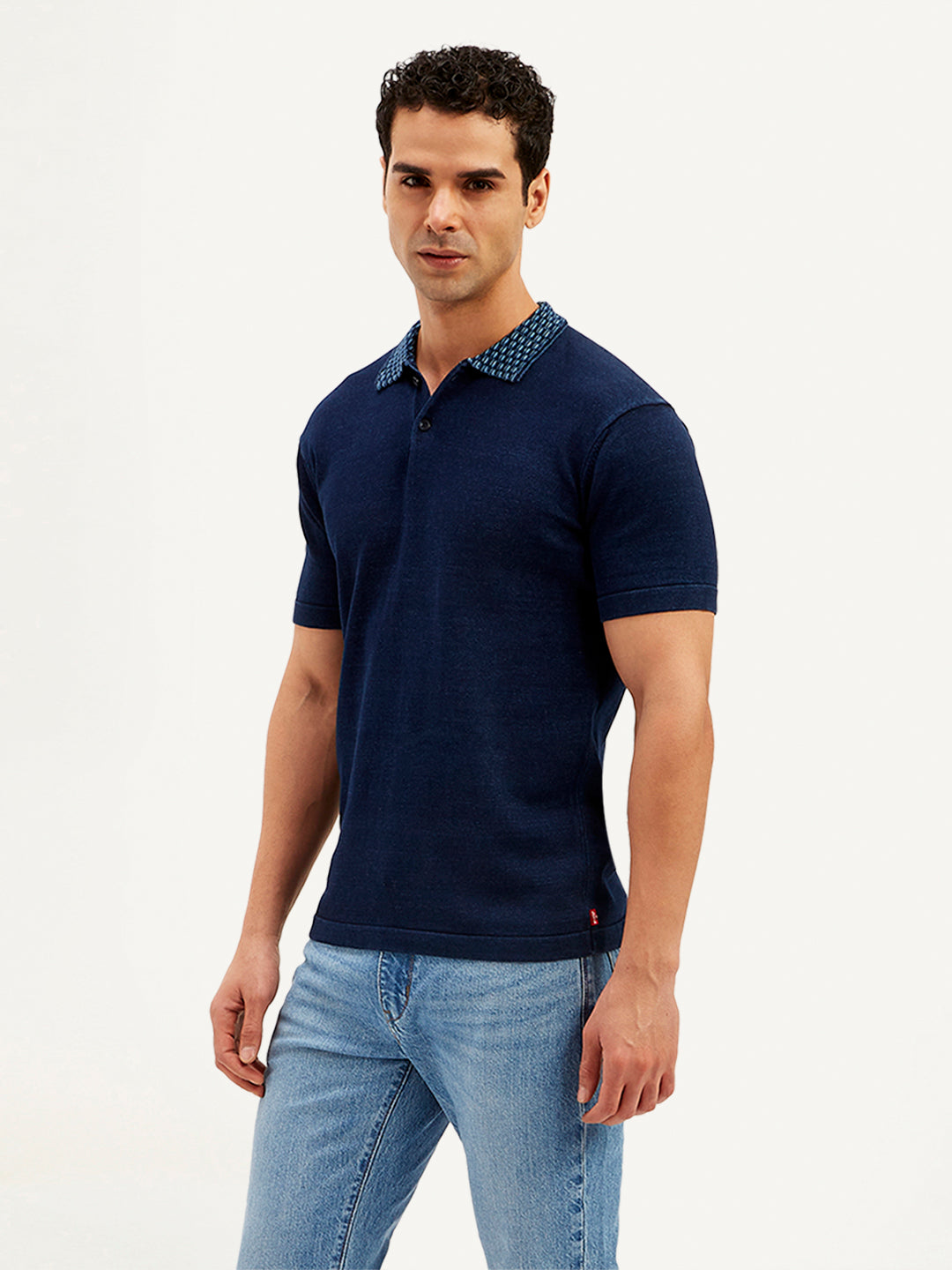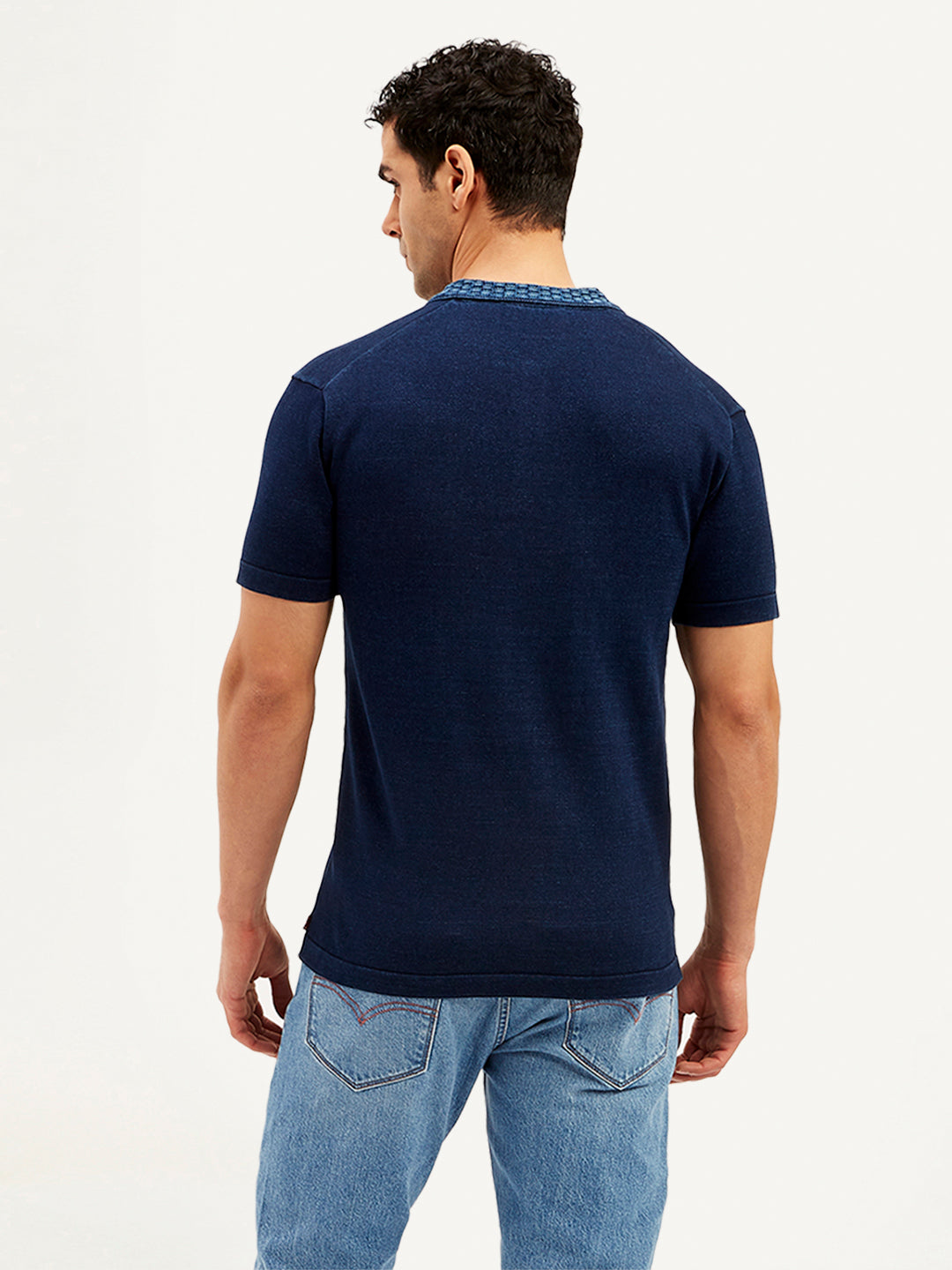 Step up your game and grab this latest t-shirt by Levi's for your wardrobe rotation. Ideal to wear with your jeans, shorts, or even your chinos, this navy pure cotton t-shirt is designed to be versatile. Standard polo collar and half sleeves in slim fit.
