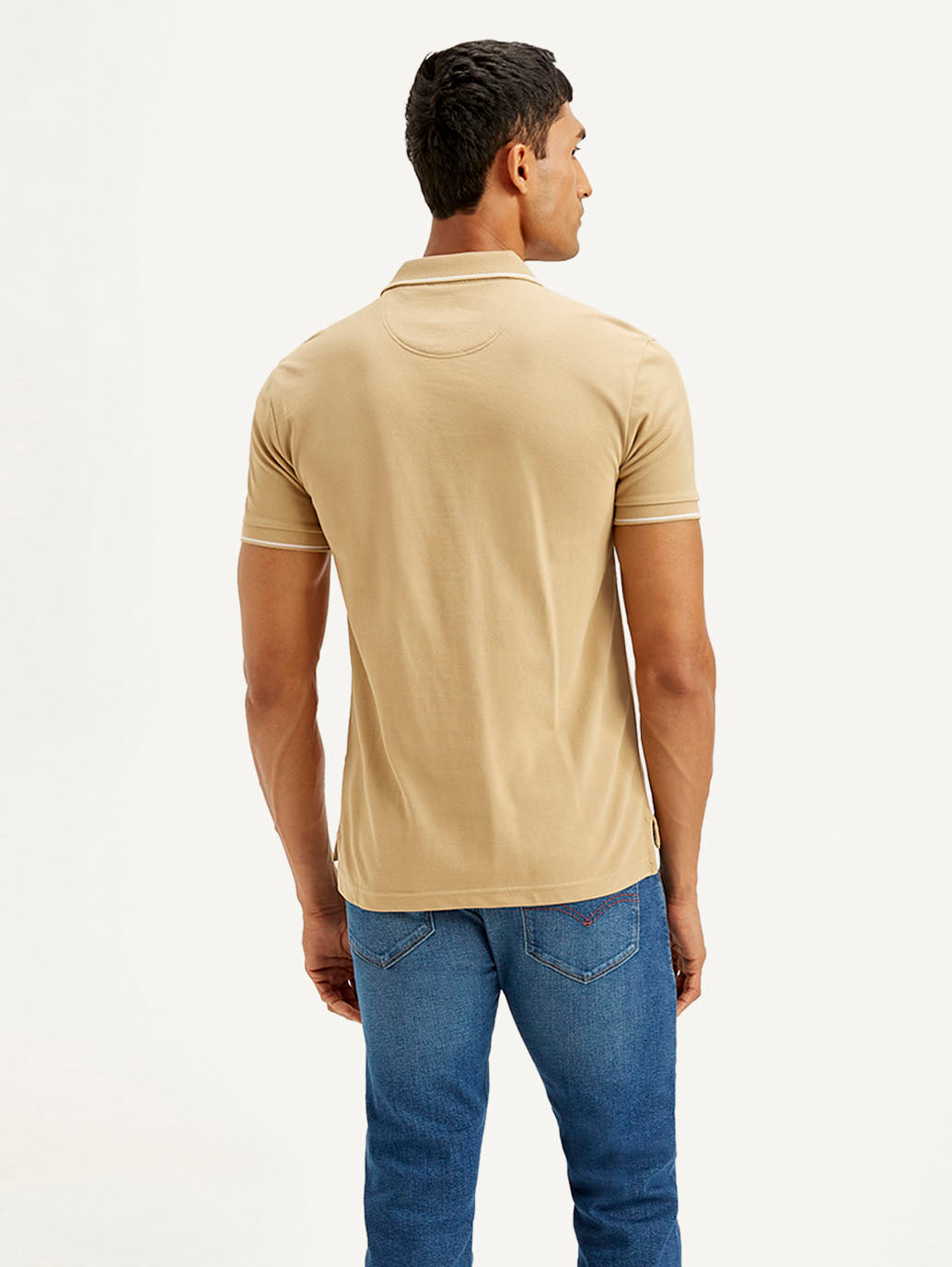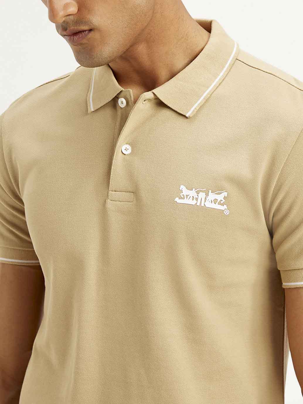Step up your game and grab this latest t-shirt by Levi's for your wardrobe rotation. Ideal to wear with your jeans, shorts, or even your chinos, this beige cotton t-shirt is designed to be versatile. Standard polo neck and half sleeves in slim fit.