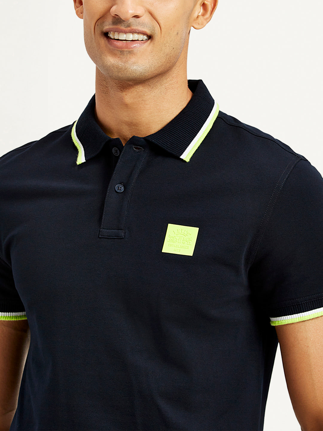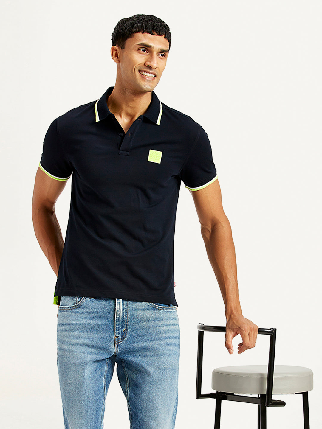 Step up your game and grab this latest t-shirt by Levi's for your wardrobe rotation. Ideal to wear with your jeans, shorts, or even your chinos, this black cotton t-shirt is designed to be versatile. Standard polo collar and short sleeves in a slim fit.