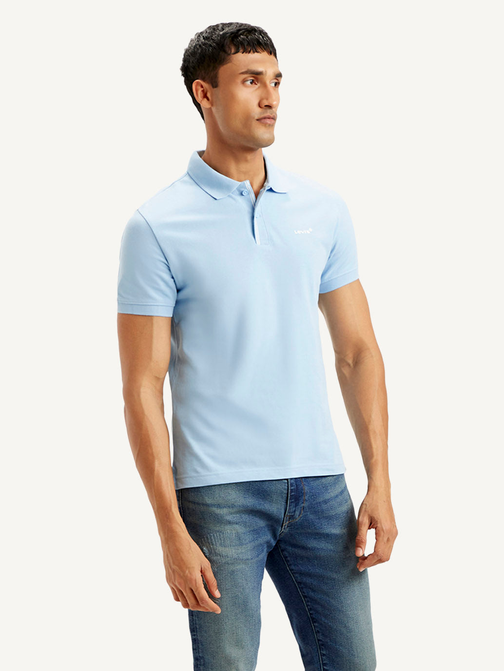 Step up your game and grab this latest t-shirt by Levi's for your wardrobe rotation. Ideal to wear with your jeans, shorts, or even your chinos, this blue cotton t-shirt is designed to be versatile. Standard polo collar and half sleeves in slim fit.