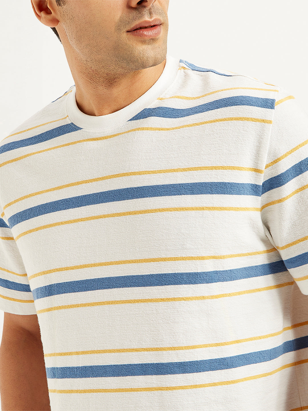 Upgrade your casual wardrobe with this new Levi's white t-shirt. Designed to keep you comfortable throughout the day, this striped pattern t-shirt is made from premium quality cotton.