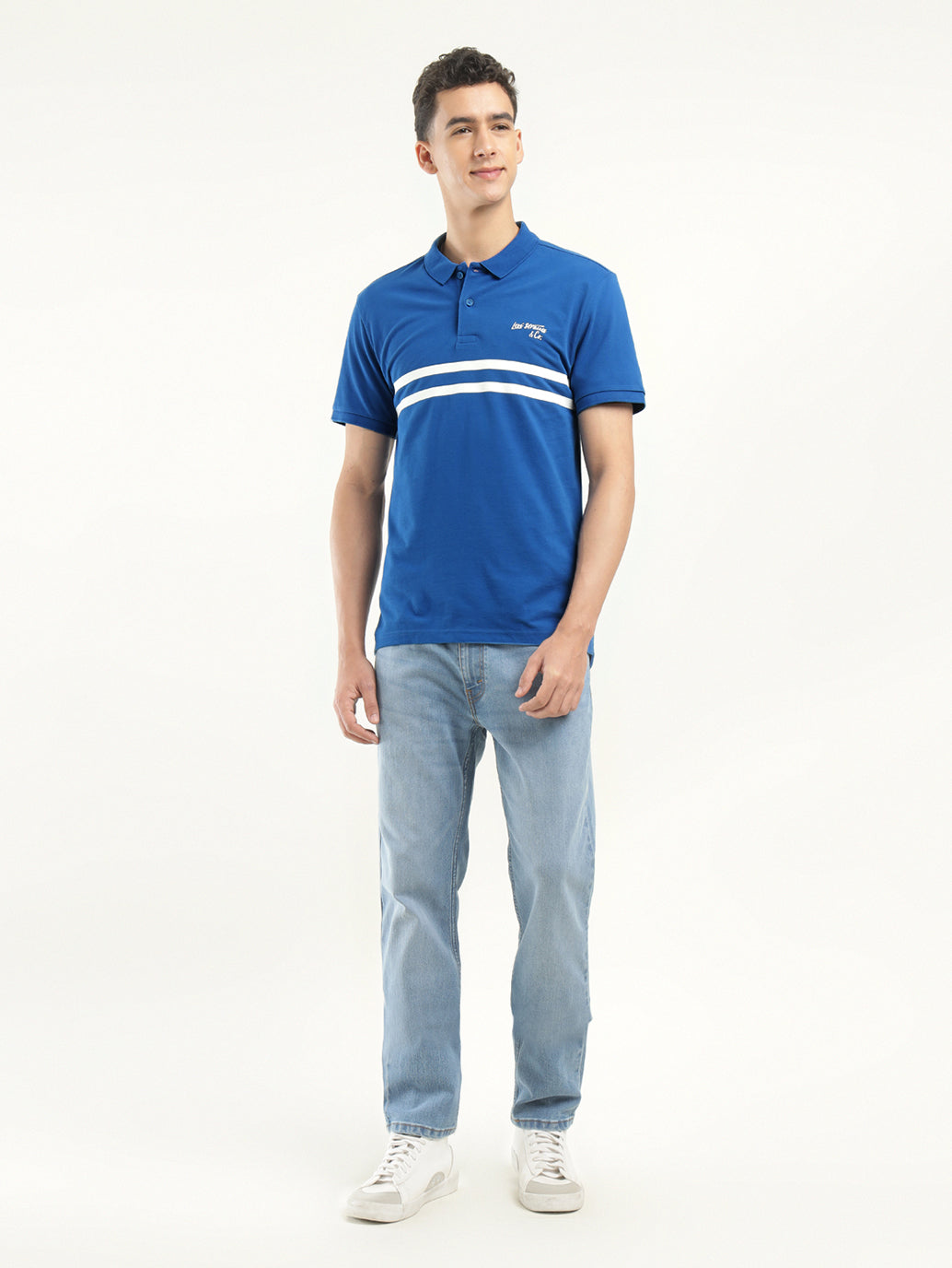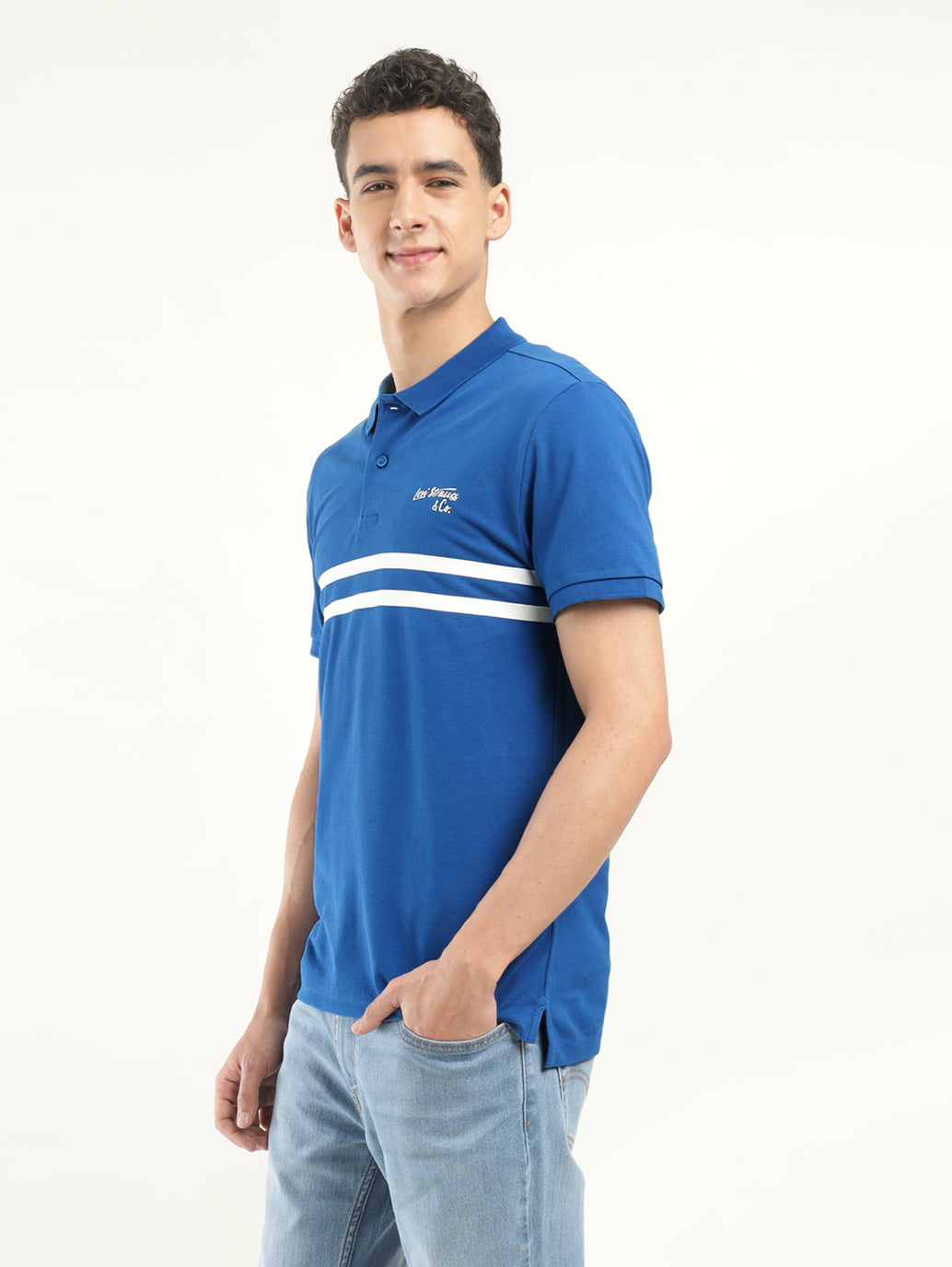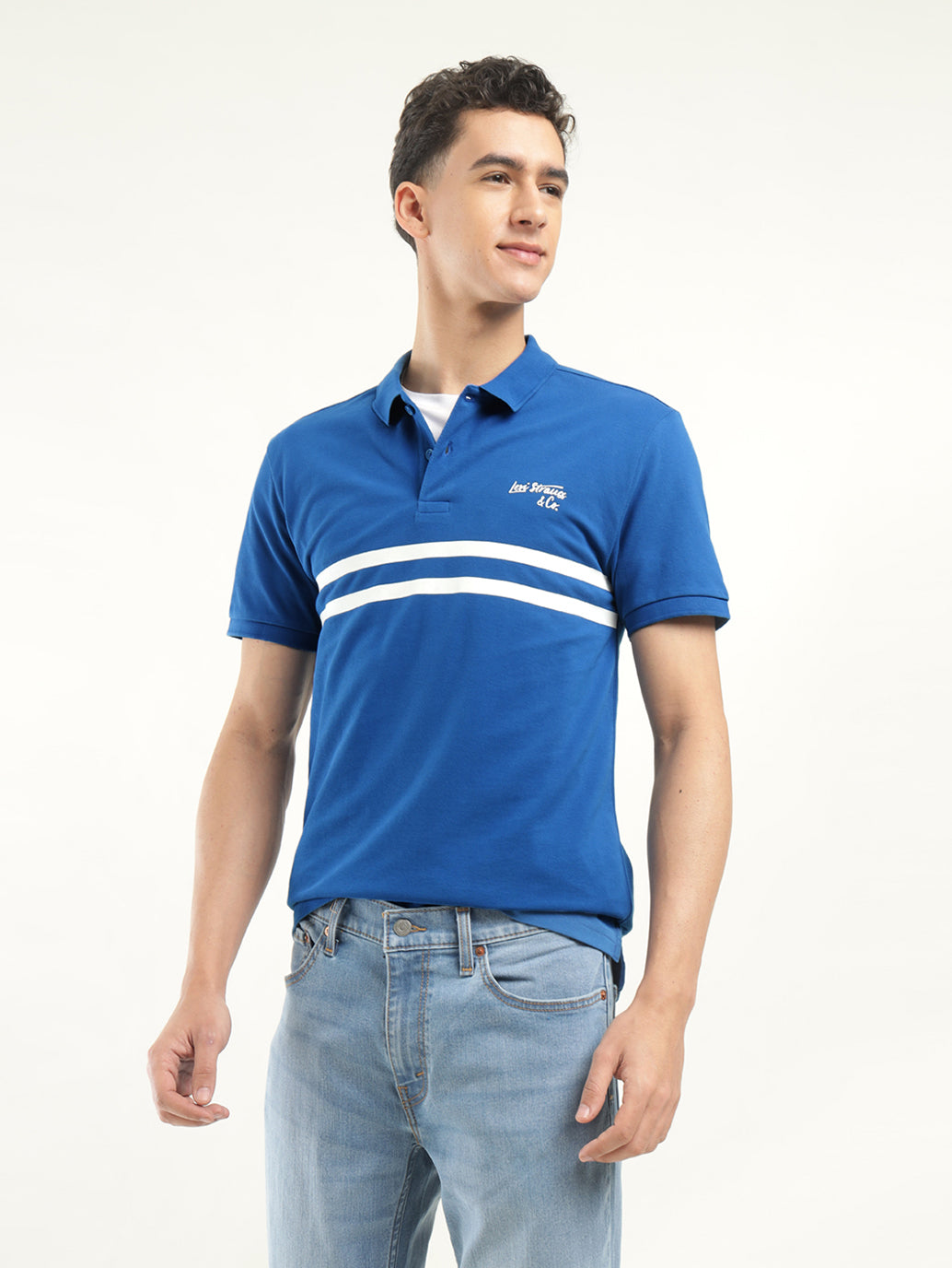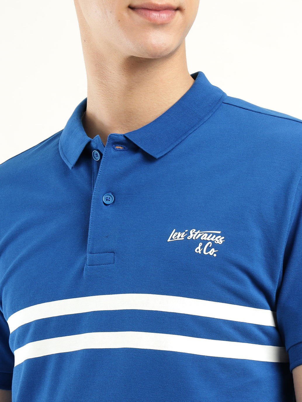 Made from good quality cotton, this easygoing Levis blue t-shirt is perfect to add to your casual collection. Features a polo collar and a striped pattern.