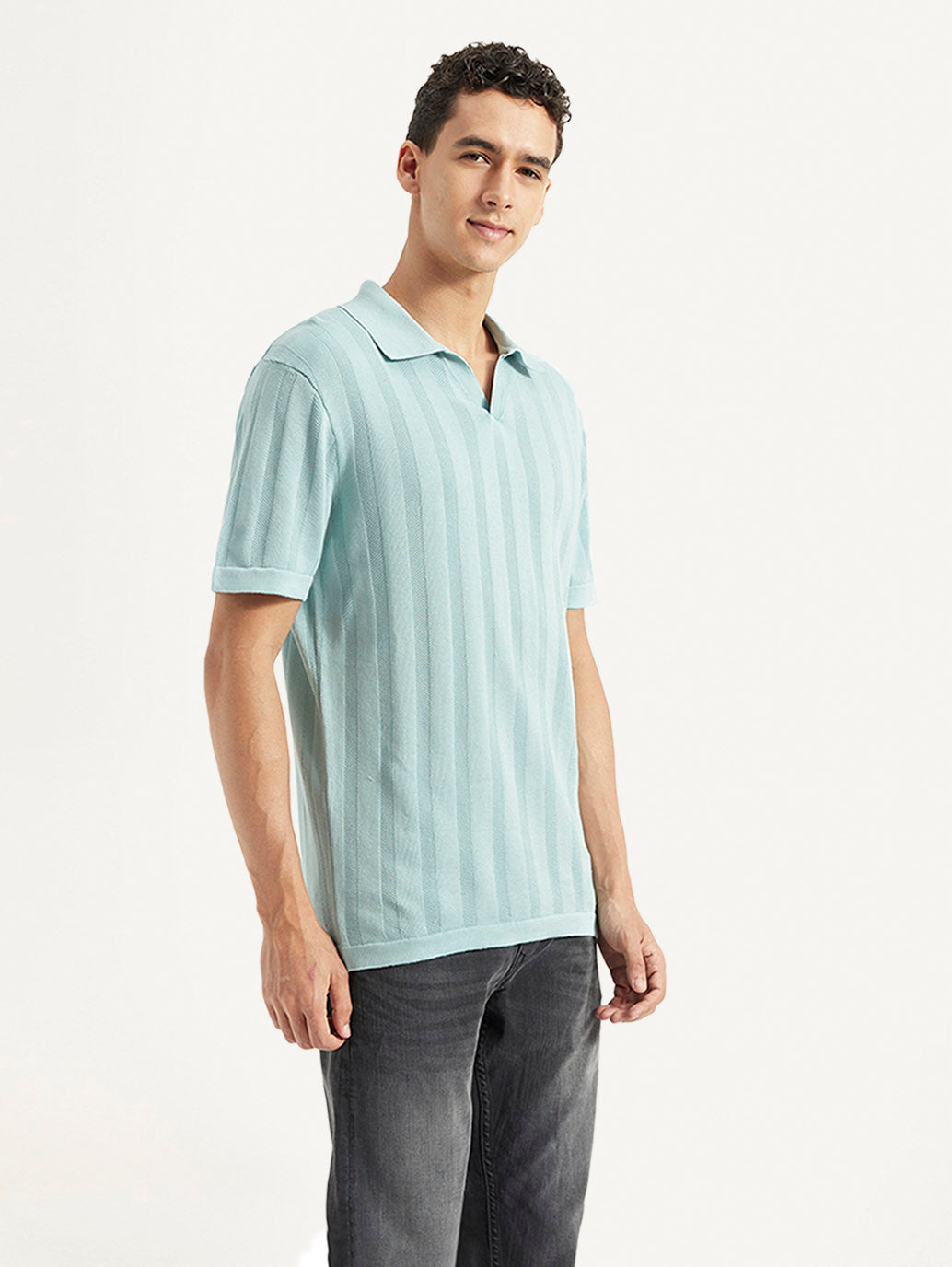 Made from good quality cotton, this easy-going Levi's blue t-shirt is perfect to add to your casual collection. Features a polo collar and a striped pattern.