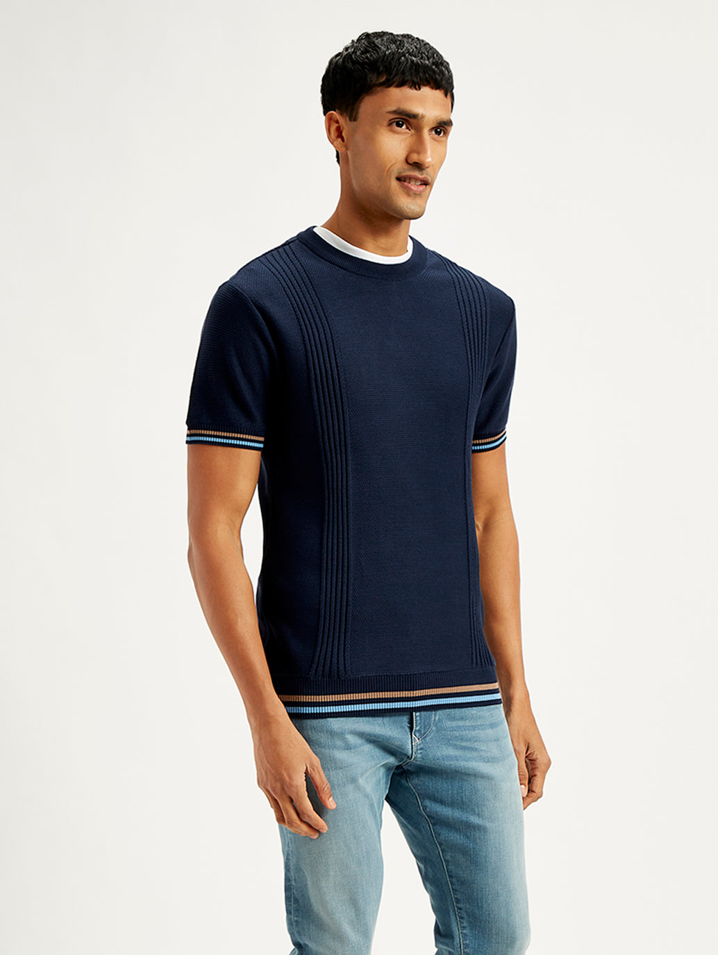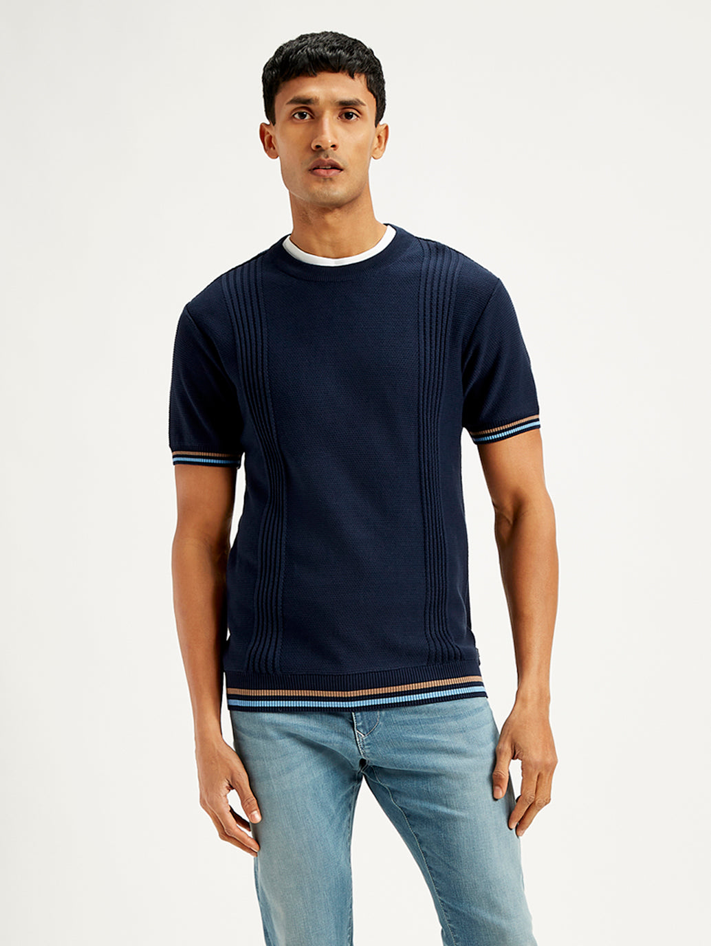 Made from good quality cotton, this easygoing Levi's navy t-shirt is perfect to add to your casual collection. Features a crew neck and a striped pattern.