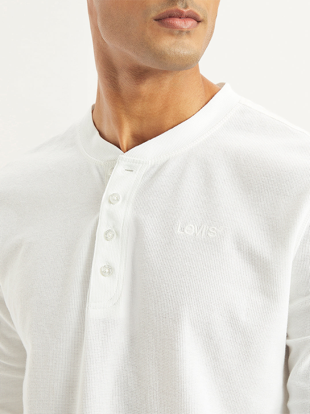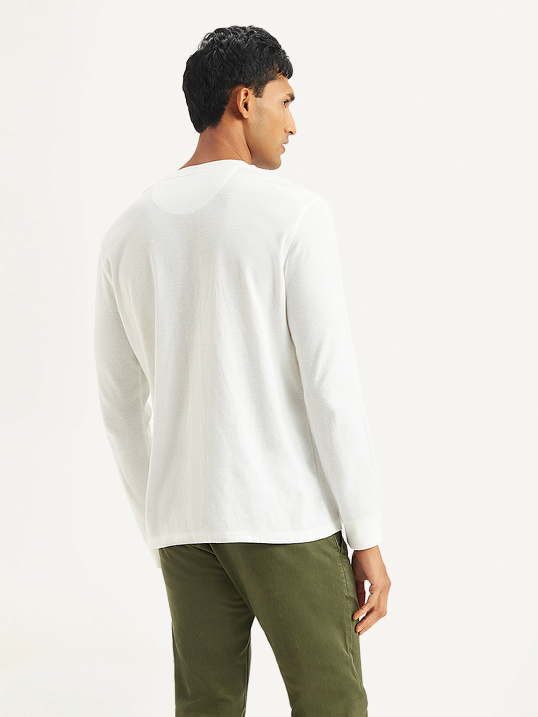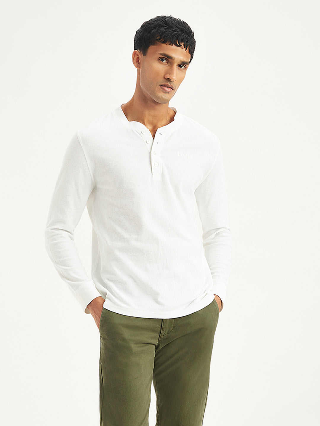 Step up your game and grab this latest t-shirt by Levi's for your wardrobe rotation. Ideal to wear with your jeans, shorts, or even your chinos, this white cotton t-shirt is designed to be versatile. Standard henley neck and full sleeves in slim fit.