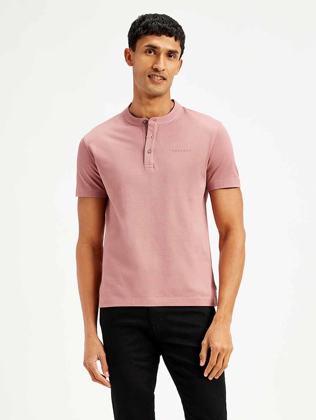 Made from good quality cotton, this easygoing Levis pink t-shirt is perfect to add to your casual collection. Features a henley neck and a textured pattern.