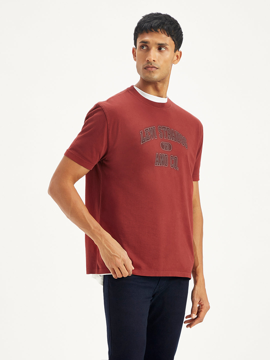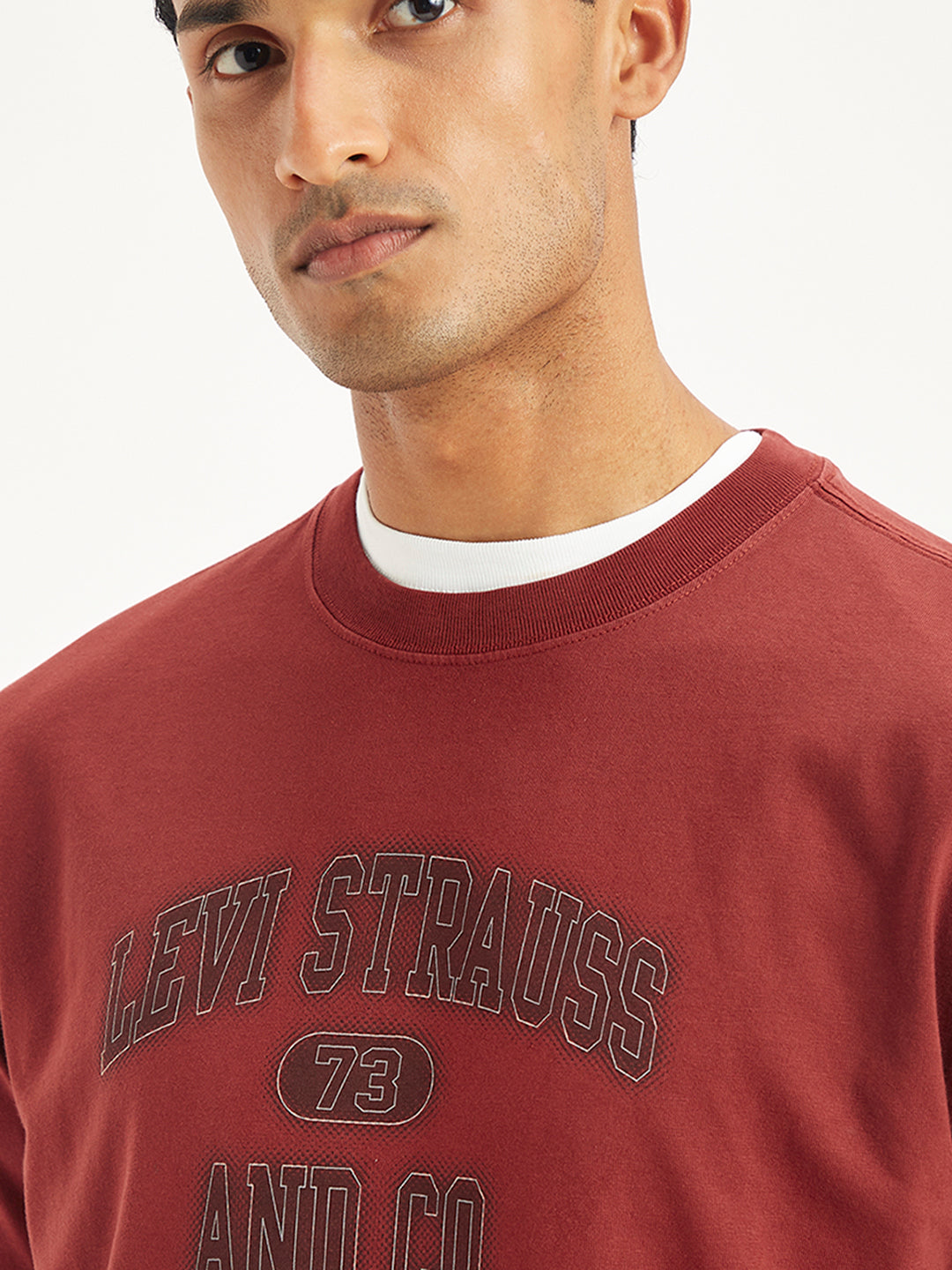 Upgrade your casual wardrobe with this new Levi's maroon t-shirt. Designed to keep you comfortable throughout the day, this typography pattern t-shirt is made from premium quality cotton.