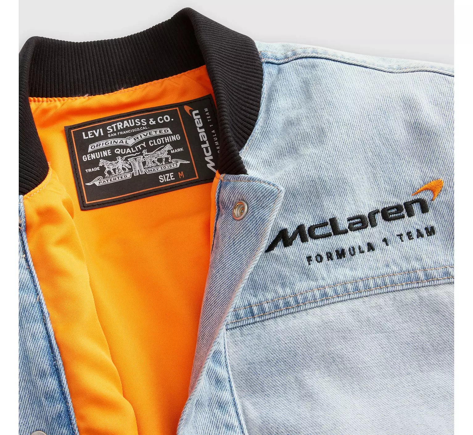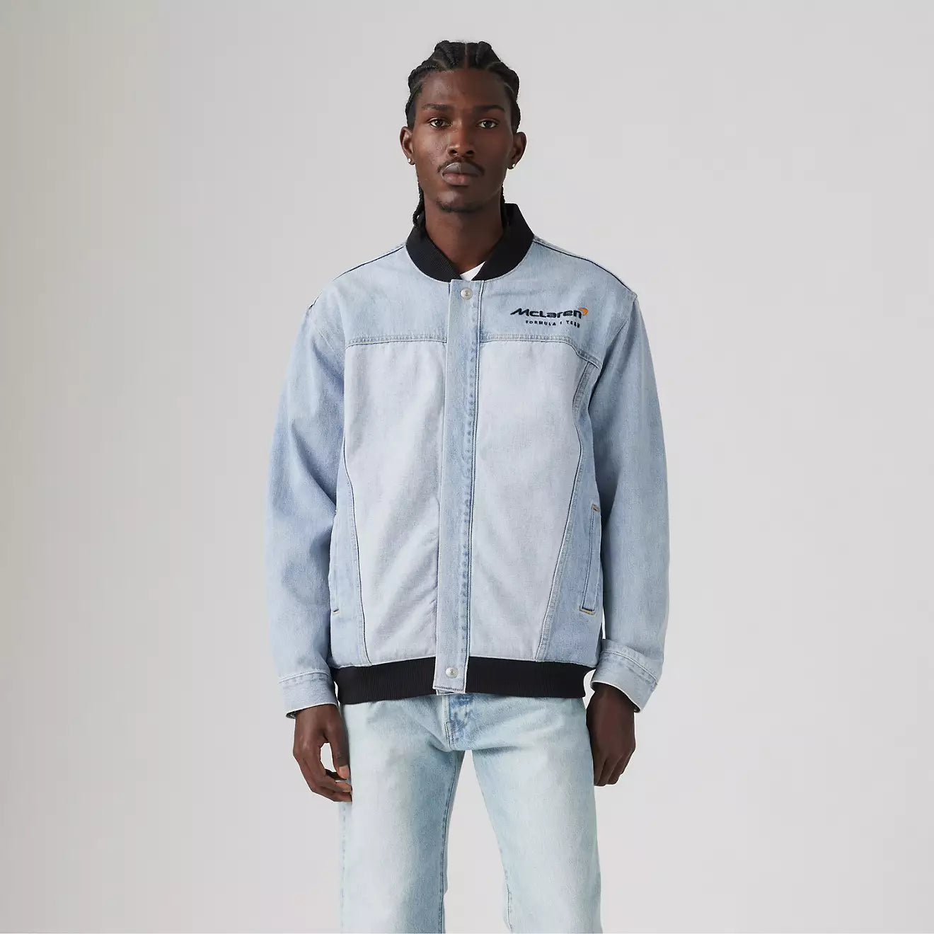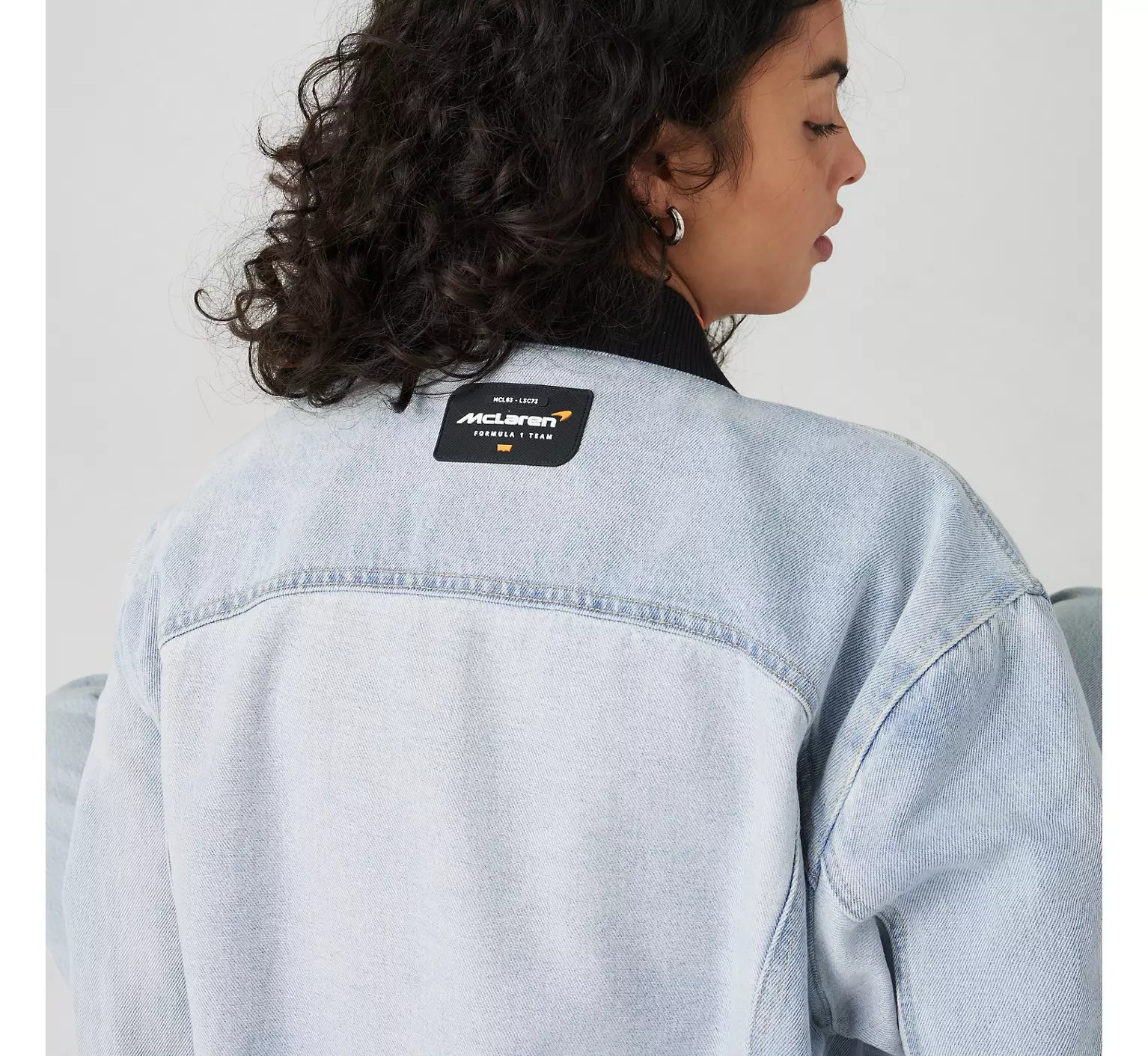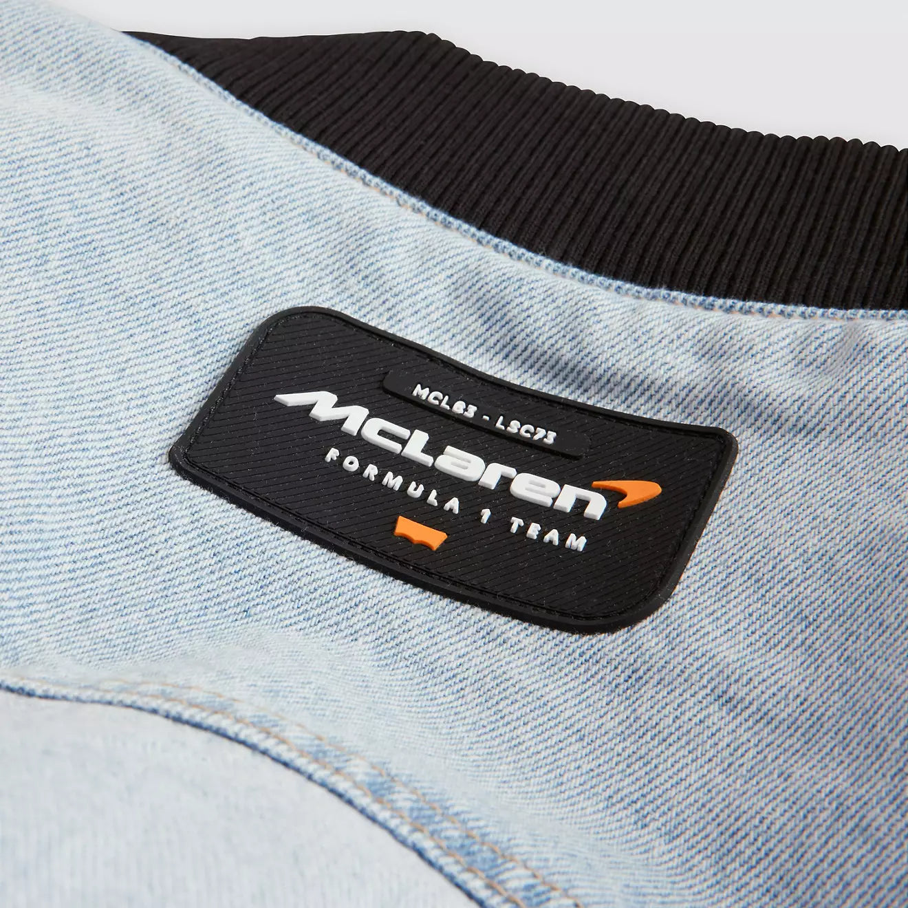 With a denim bomber jacket design, this Track Trucker features contrasting panels on the chest and back and a contrasting rib collar and hem. We topped it off with a McLaren Racing embroidery on the chest.