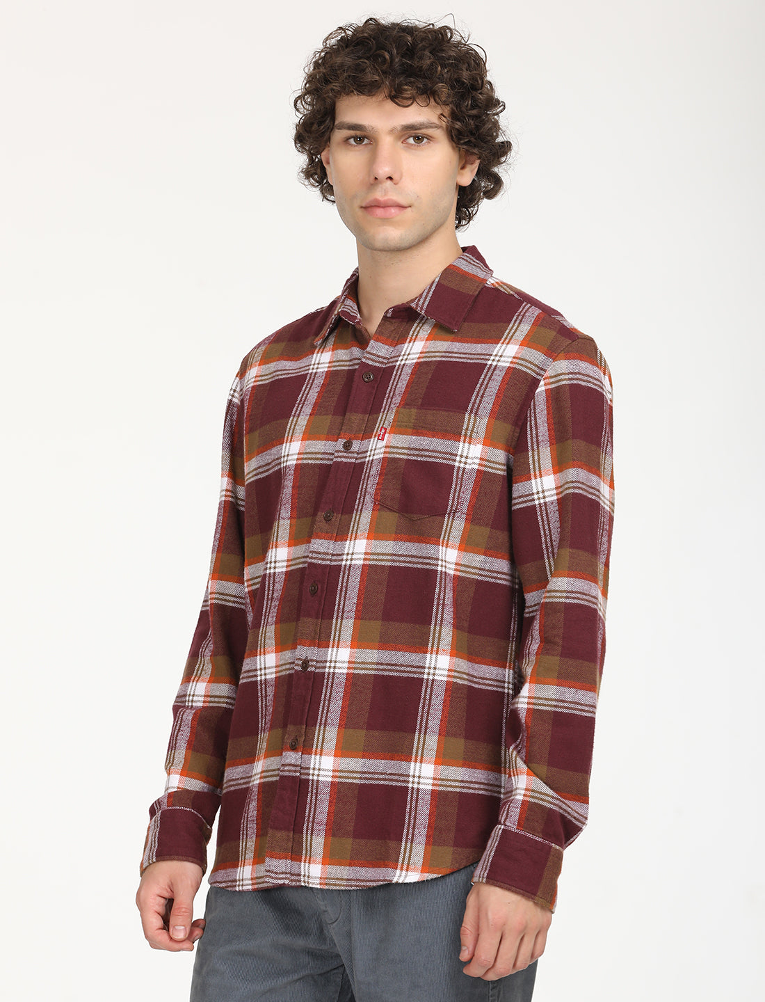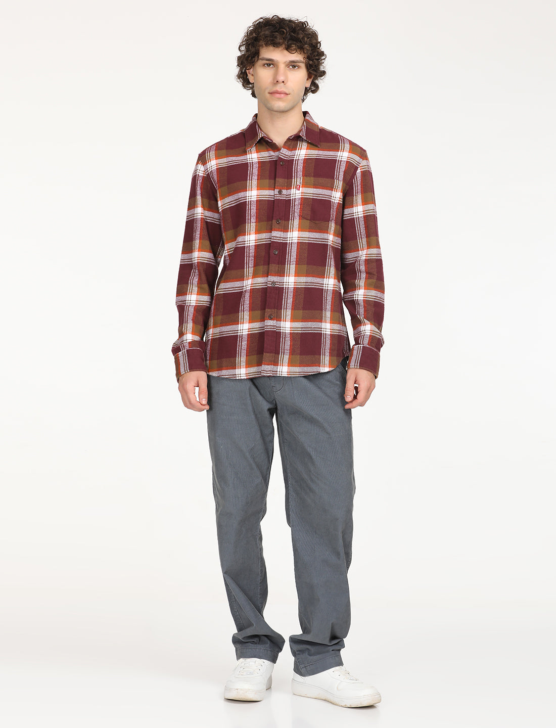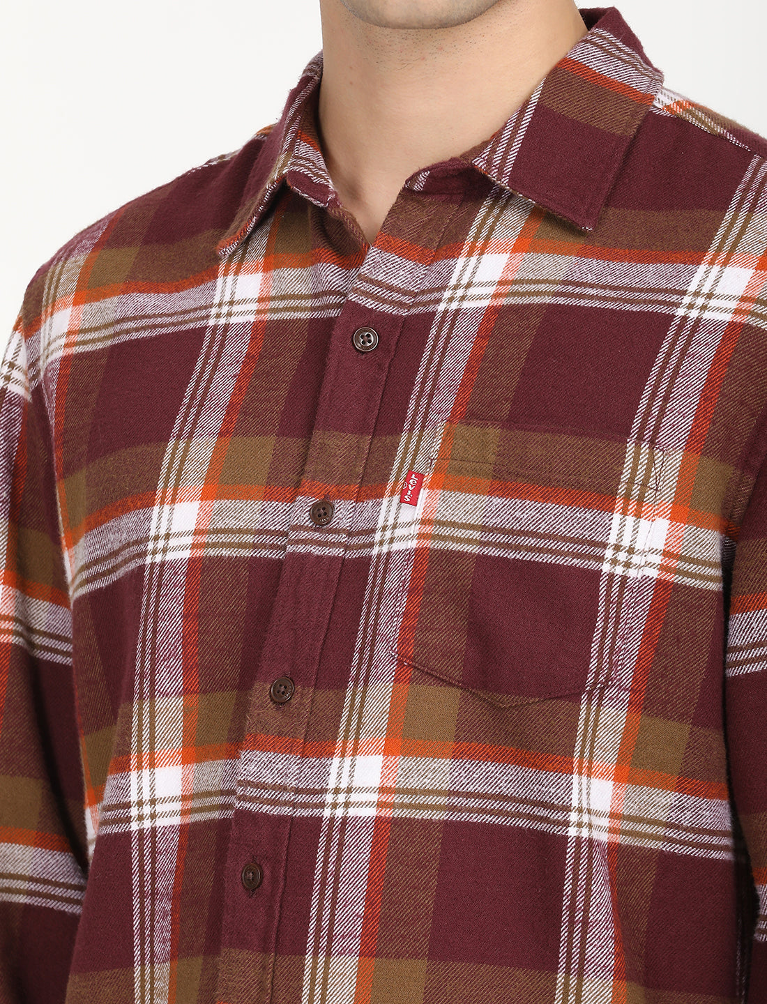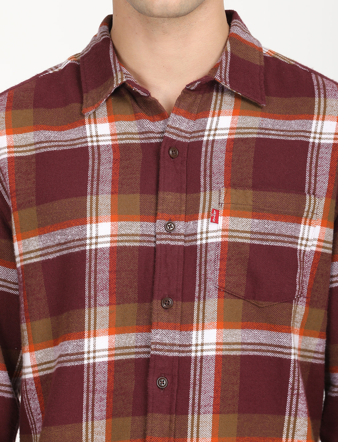 Add exceptional style to your outerwear wardrobe this season with this jacket from Levi's. Its spread collar and full sleeves make styling easy. It also comes in a plaid pattern and in the color maroon, which adds to the overall charm of the outfit.