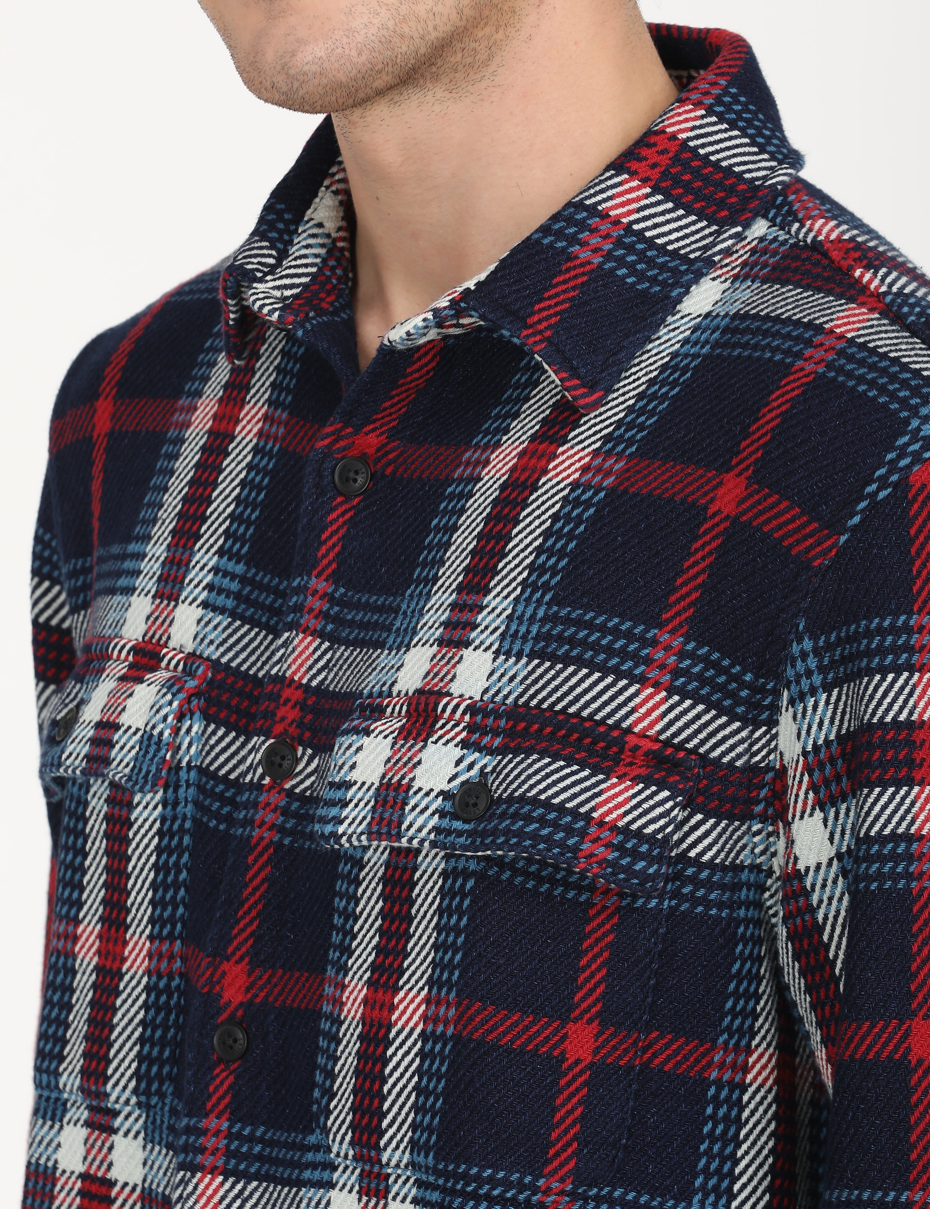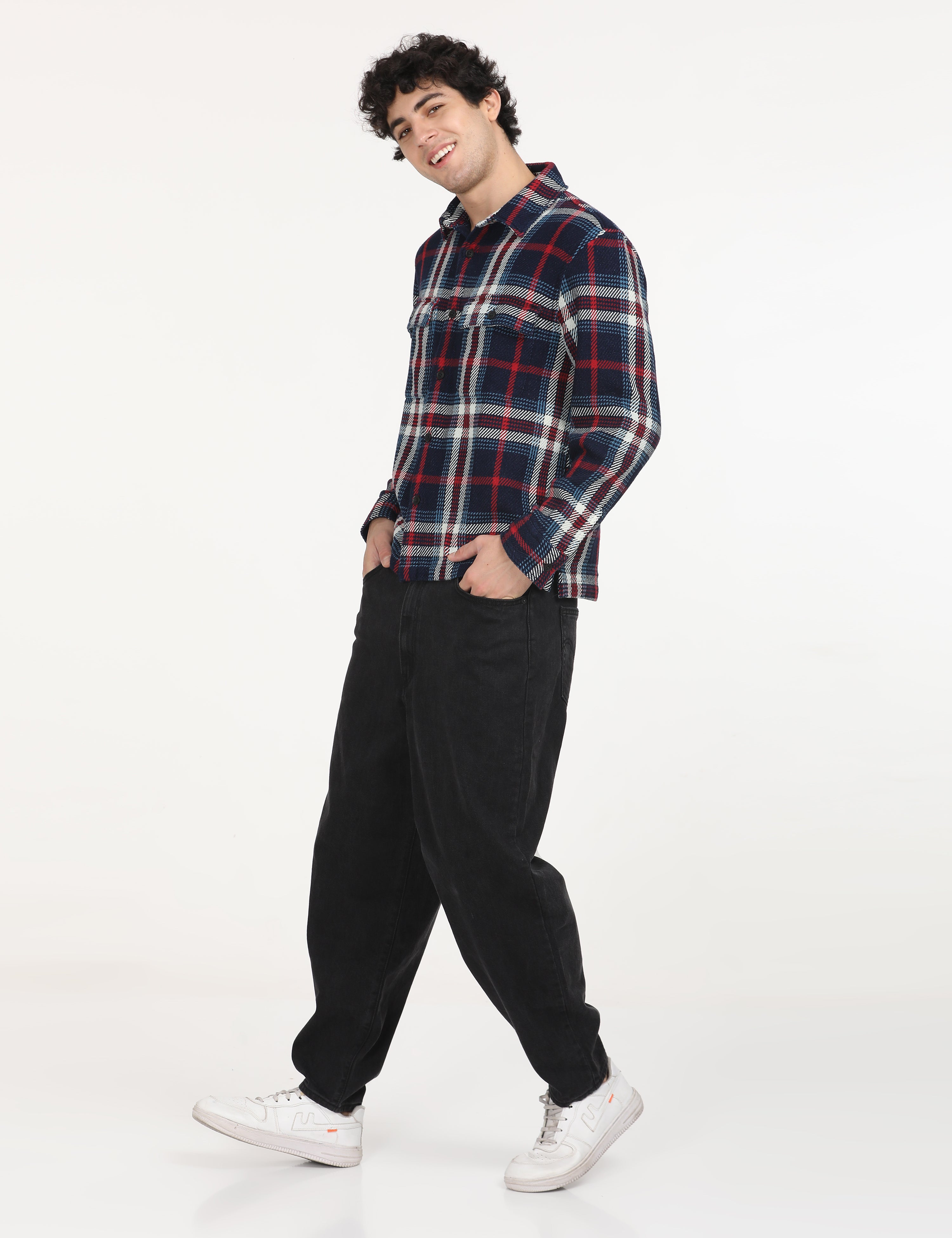 1. Comes in a navy color and plaid pattern