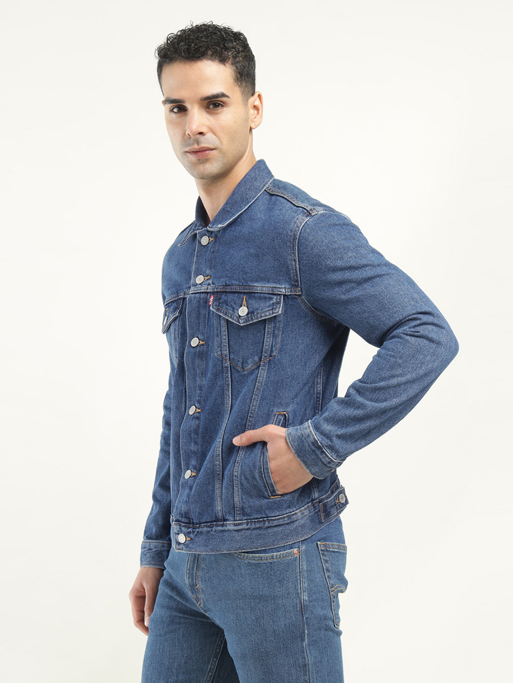 Layering is made stylish and fun with this blue solid pattern jacket from Levi's. It features a spread collar and regular fit that gives it a fashionable silhouette.