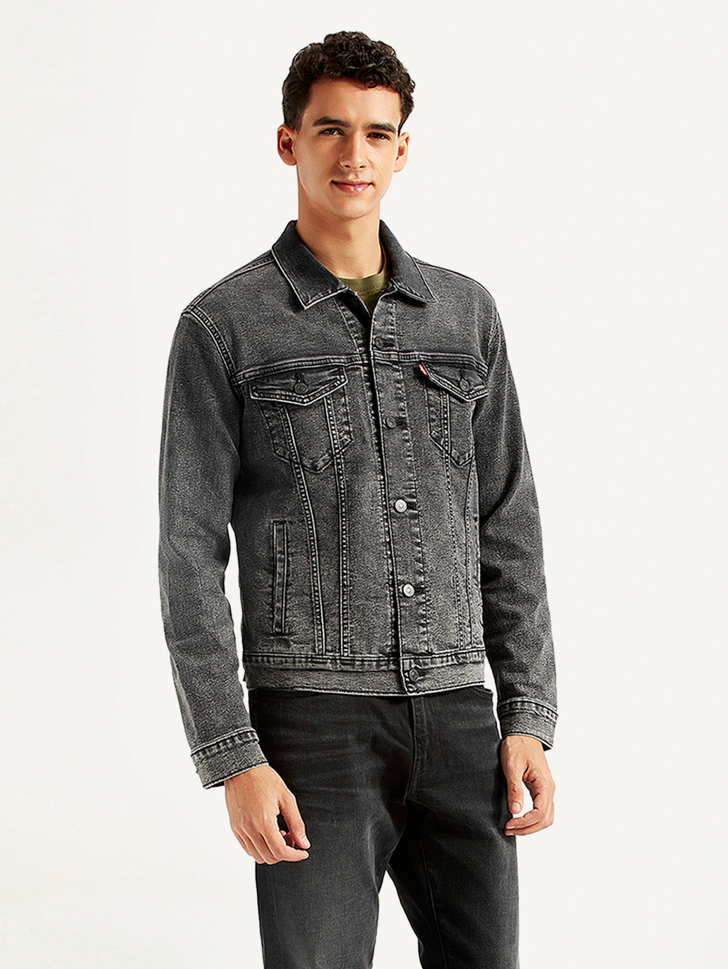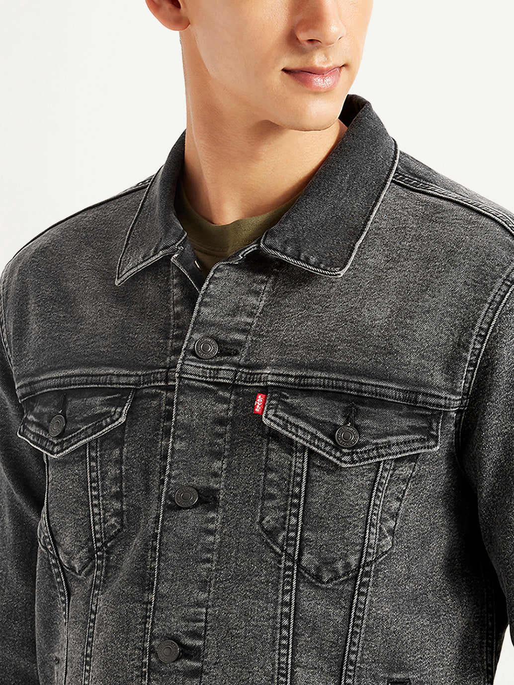 Add a stylish finish to your laid-back outfits with this jacket from Levi's. Give your basics an uplifted look with this cotton grey solid pattern jacket. Provides a comfortable yet stylish regular fit.