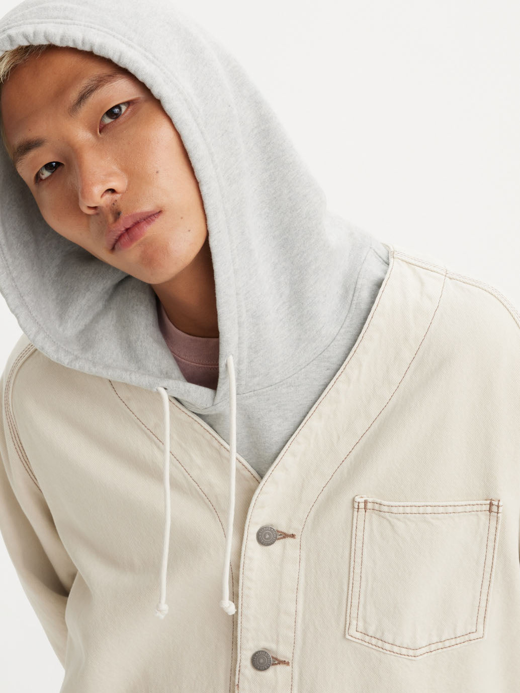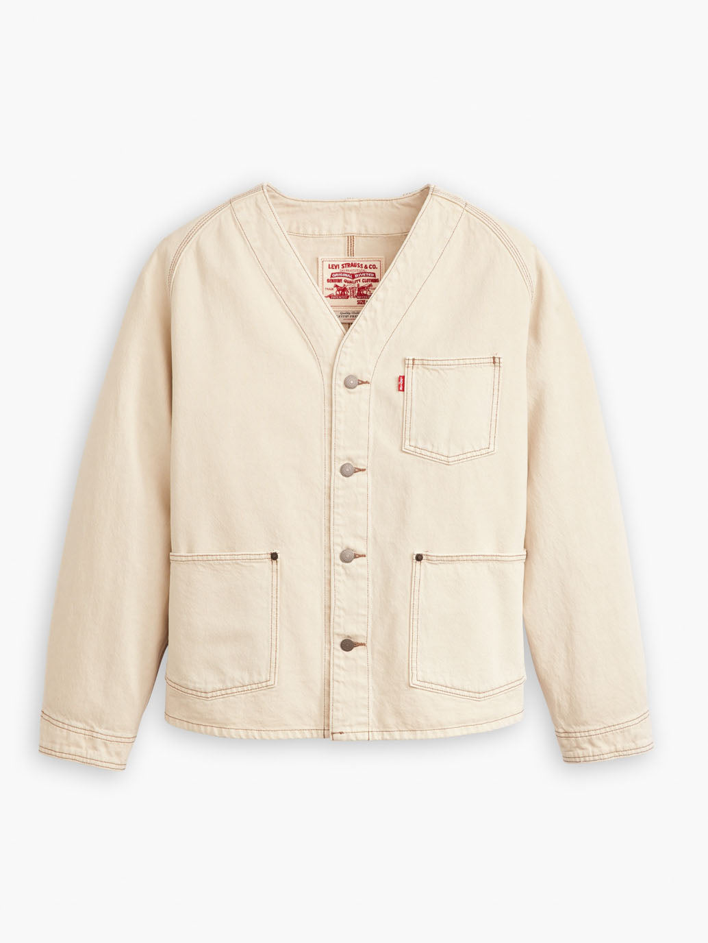 This jacket from Levi's is designed for comfort and warmth in case of that little nip in the air. Made from cotton in a relaxed fit, this jacket is as flattering as they come. Its cream color and solid pattern adds a dash of personality to your look. This jacket proves to be a simple piece of outerwear to achieve that fashionable and cozy look.