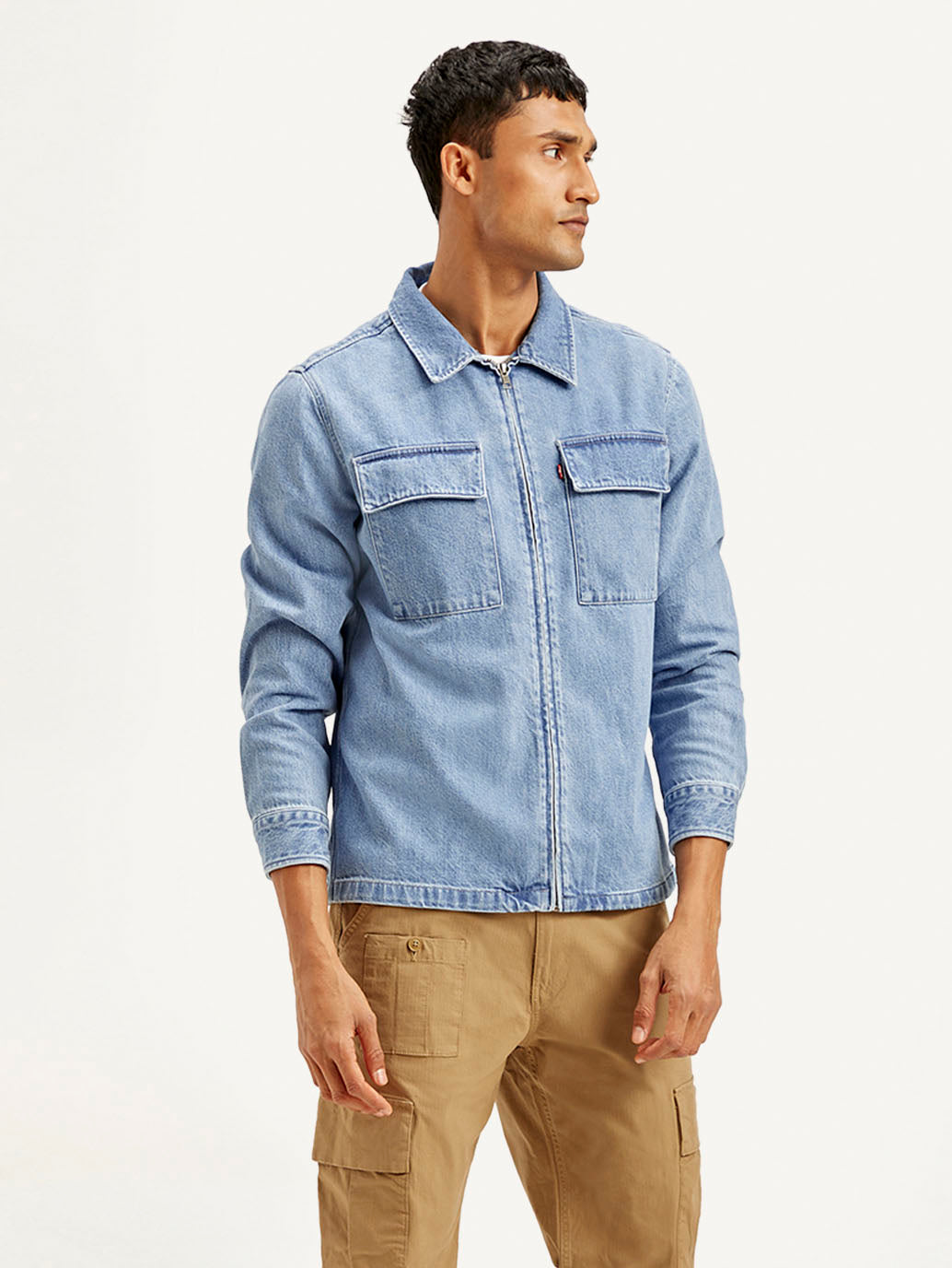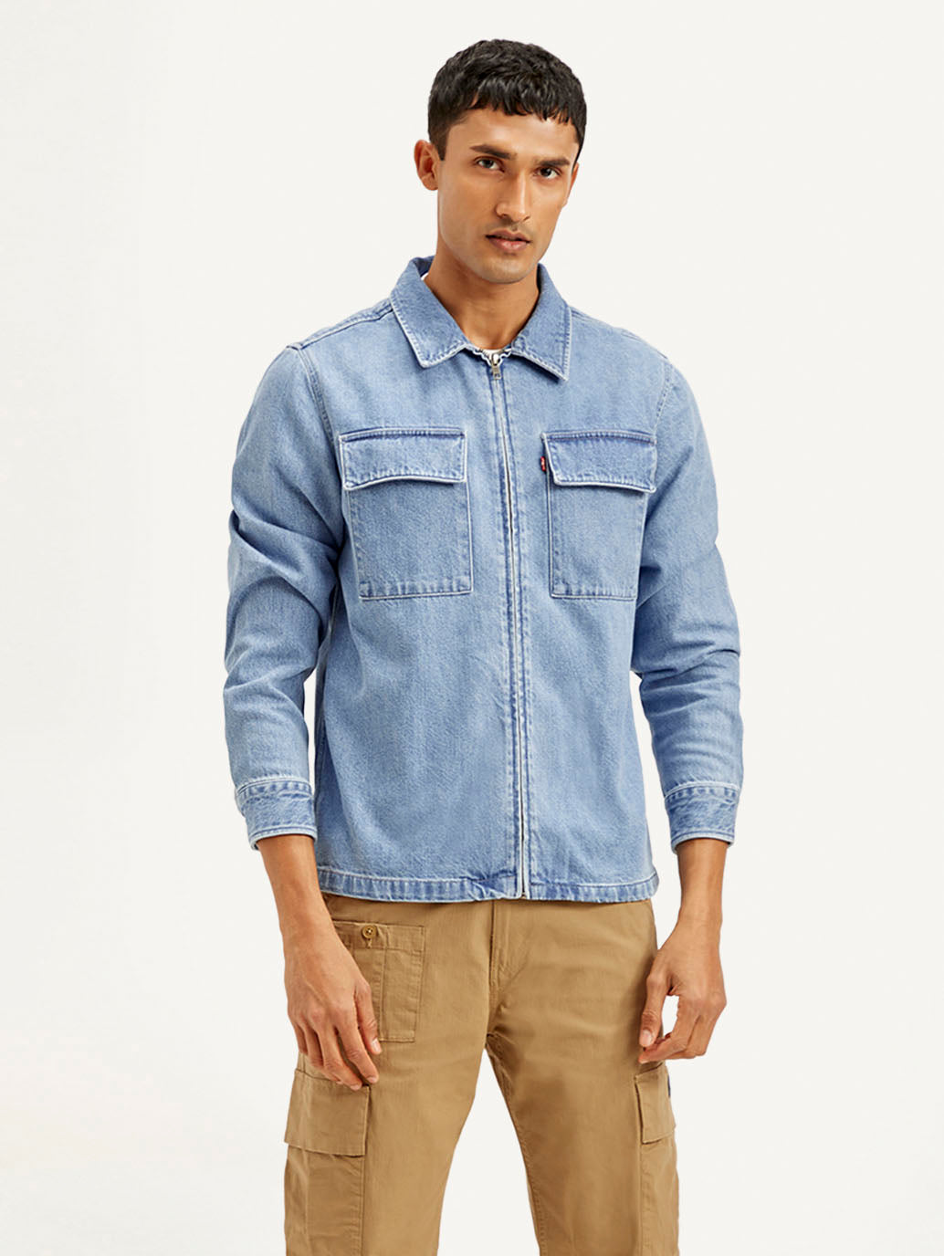 Meet your new go-to jacket by Levi's. This blue solid pattern jacket will be a great addition to your casual wardrobe. The full sleeves and zip makes it an effortless pairing option with most of your casual clothes.