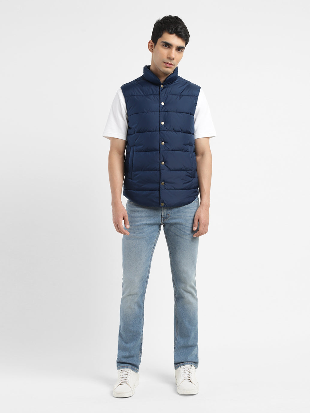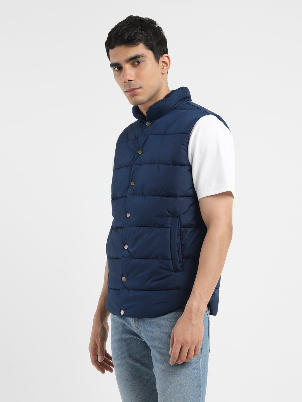 This Levi's jacket will undoubtedly become your next favorite piece to wear regularly. With its band neck and sleeveless sleeves, it is the perfect layering piece for the transitional season. Whether paired with a turtleneck t-shirt or a round-neck t-shirt, this jacket complements all.