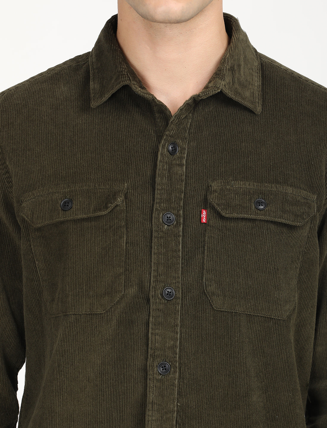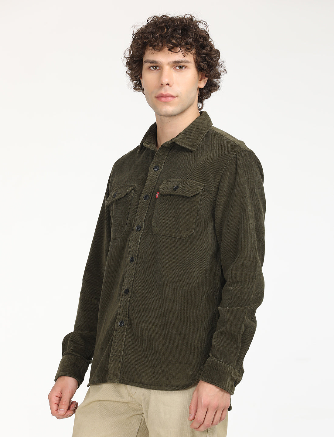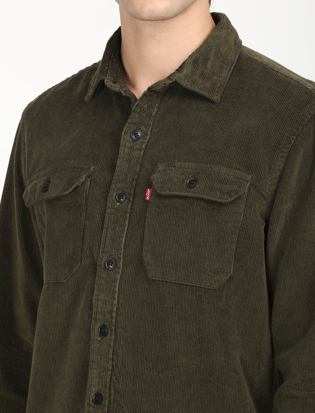 Add a stylish finish to your laid-back outfits with this jacket from Levi's. Give your basics an uplifted look with this cotton green solid pattern jacket. Provides a comfortable yet stylish regular fit.