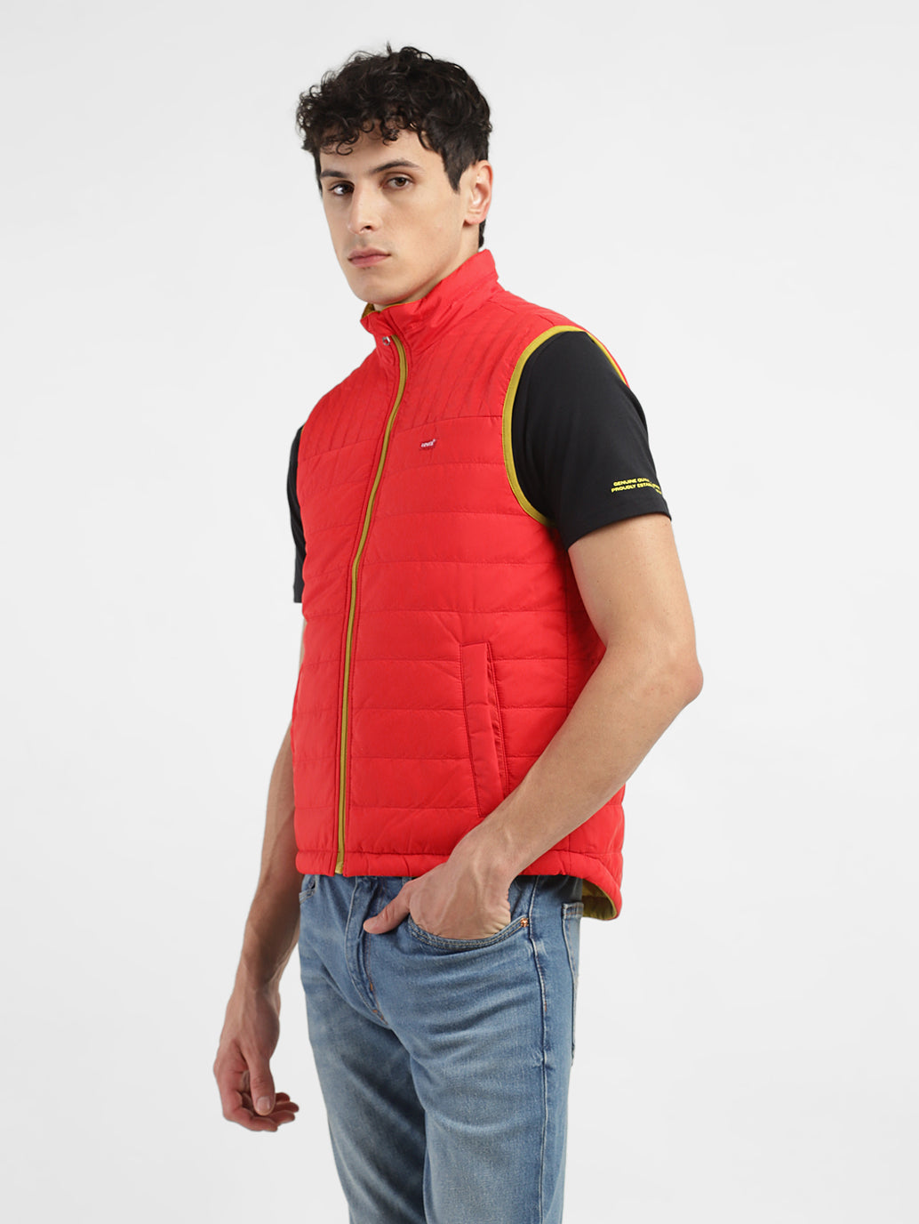 Layering is a skill and this polyester jacket from Levi's just makes it that much easier to master. In the color red and a solid pattern, this jacket serves as a style statement. Pair it with a T-shirt and a pair of denim for the ultimate cool look.