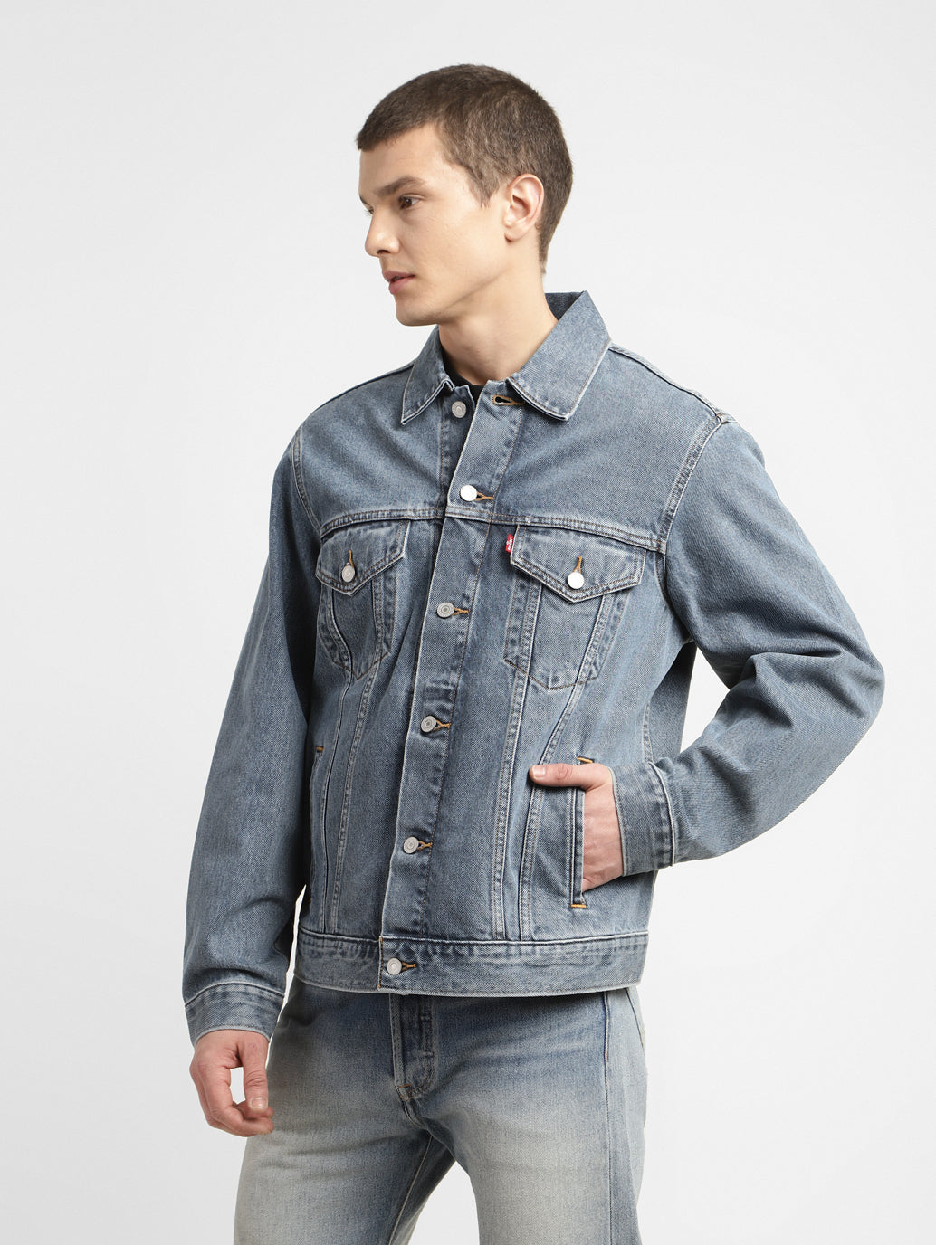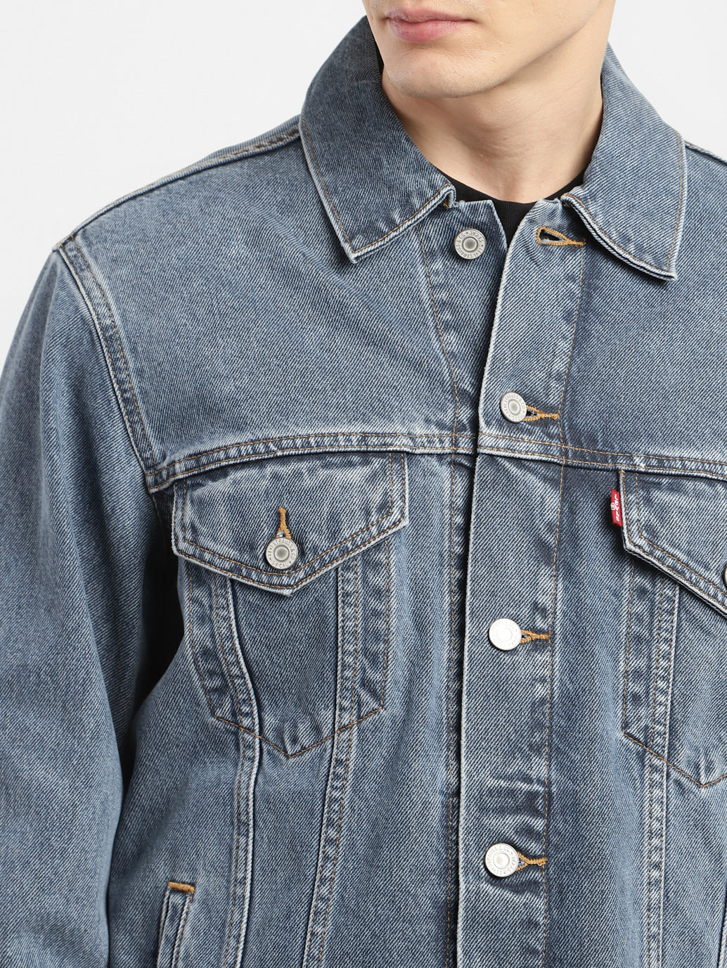 There will always be room in your wardrobe for this casual jacket from Levi's. This regular fit jacket in the color blue and solid pattern will make you look dressed up without really trying.